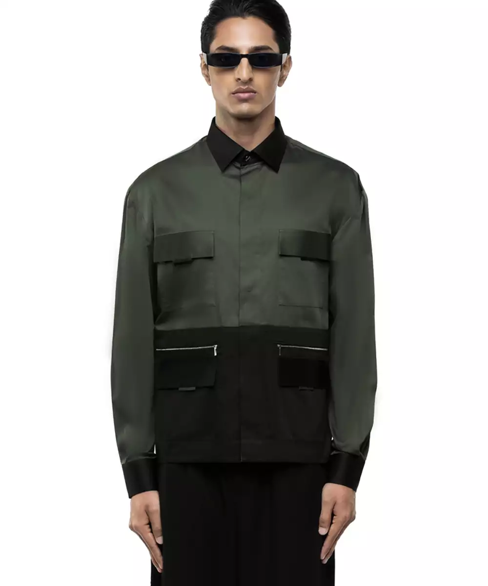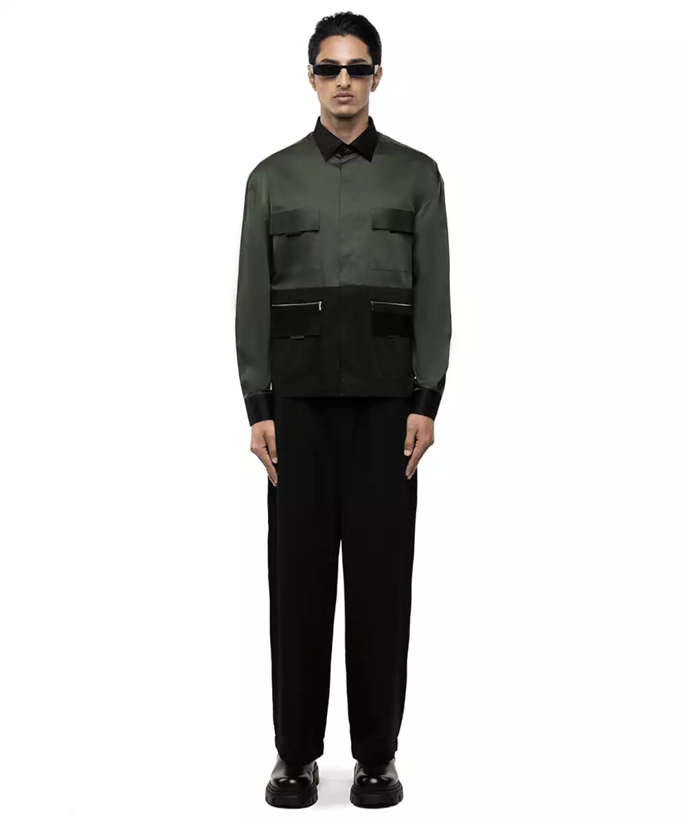 Olive Green Embroidered Jute Jacket With Kurta & Pant