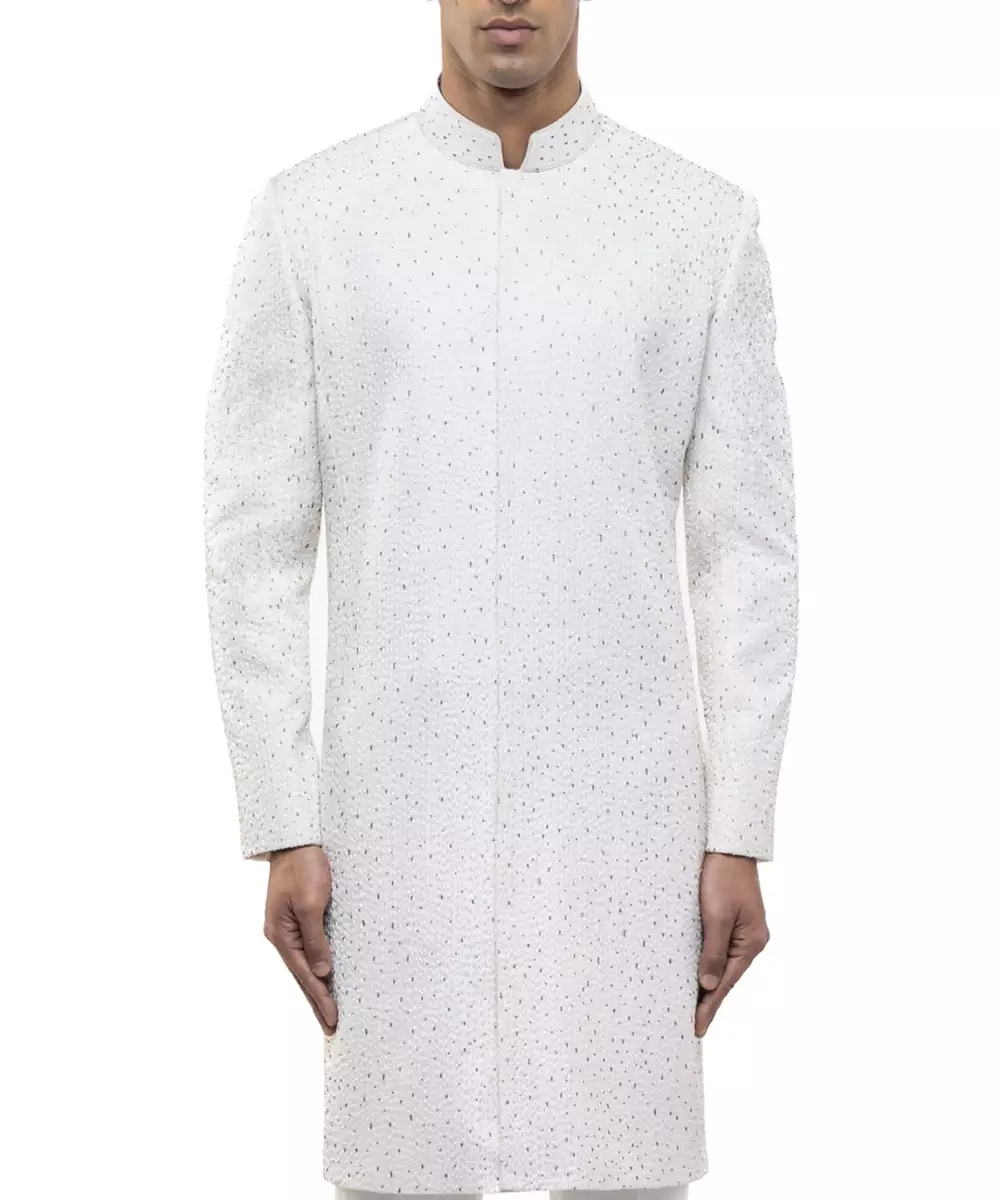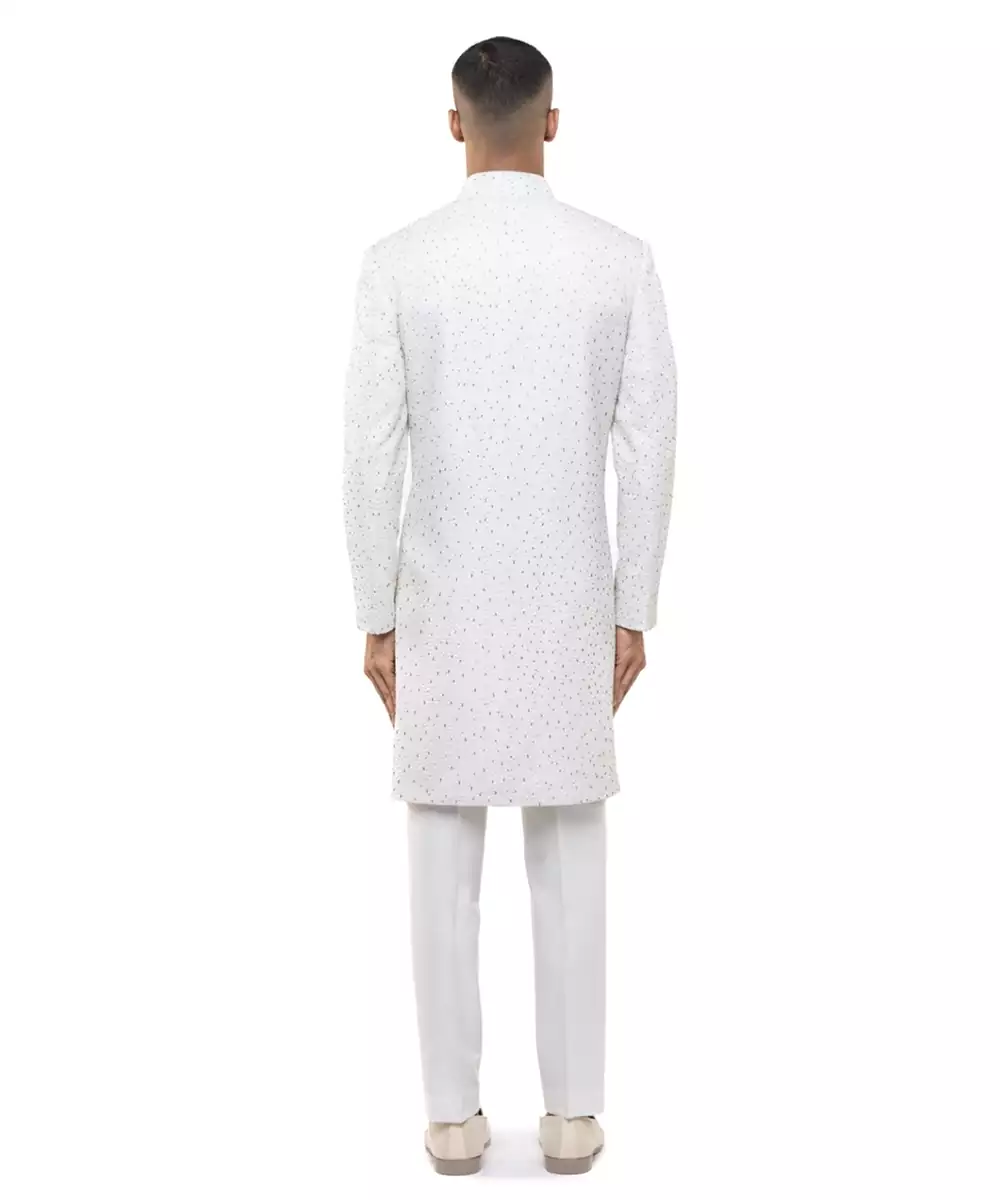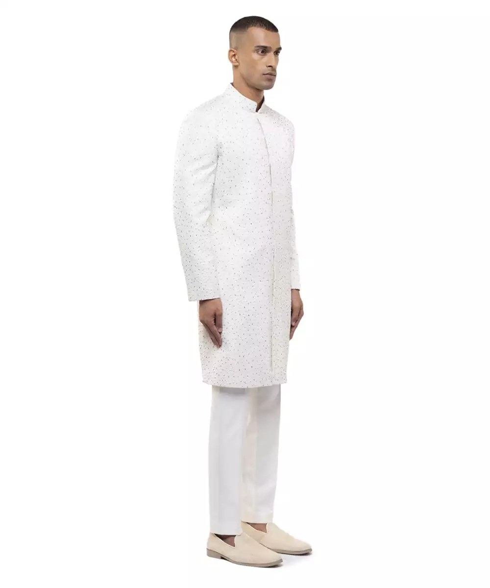 White Embroidered Silk Sherwani Set