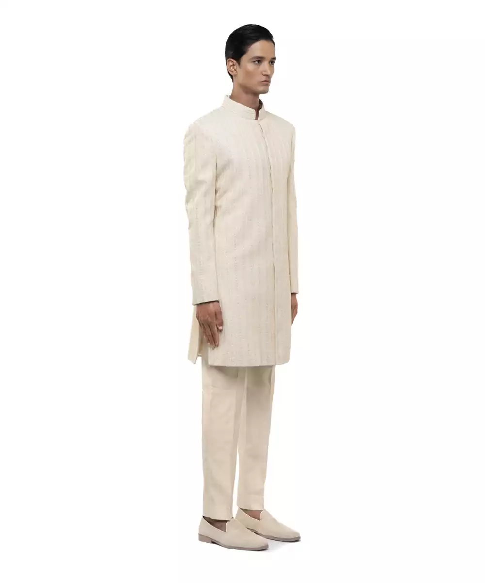 White Embroidered Silk Sherwani Set
