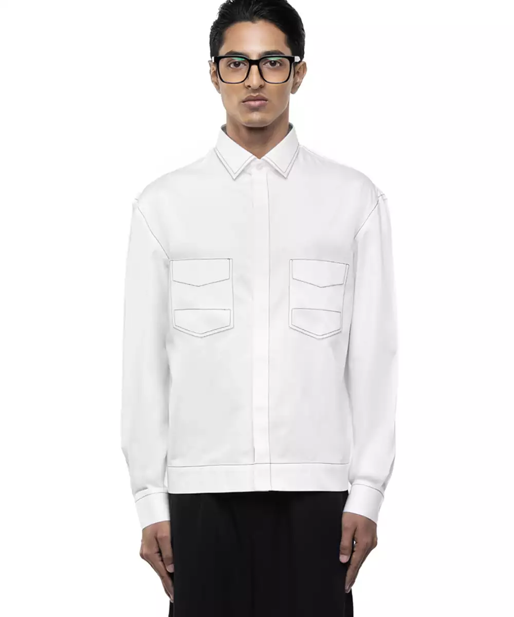 Cut Away Collar Concealed Placket Square Cuff Straight Hem 100% Giza Cotton Relaxed Fit
