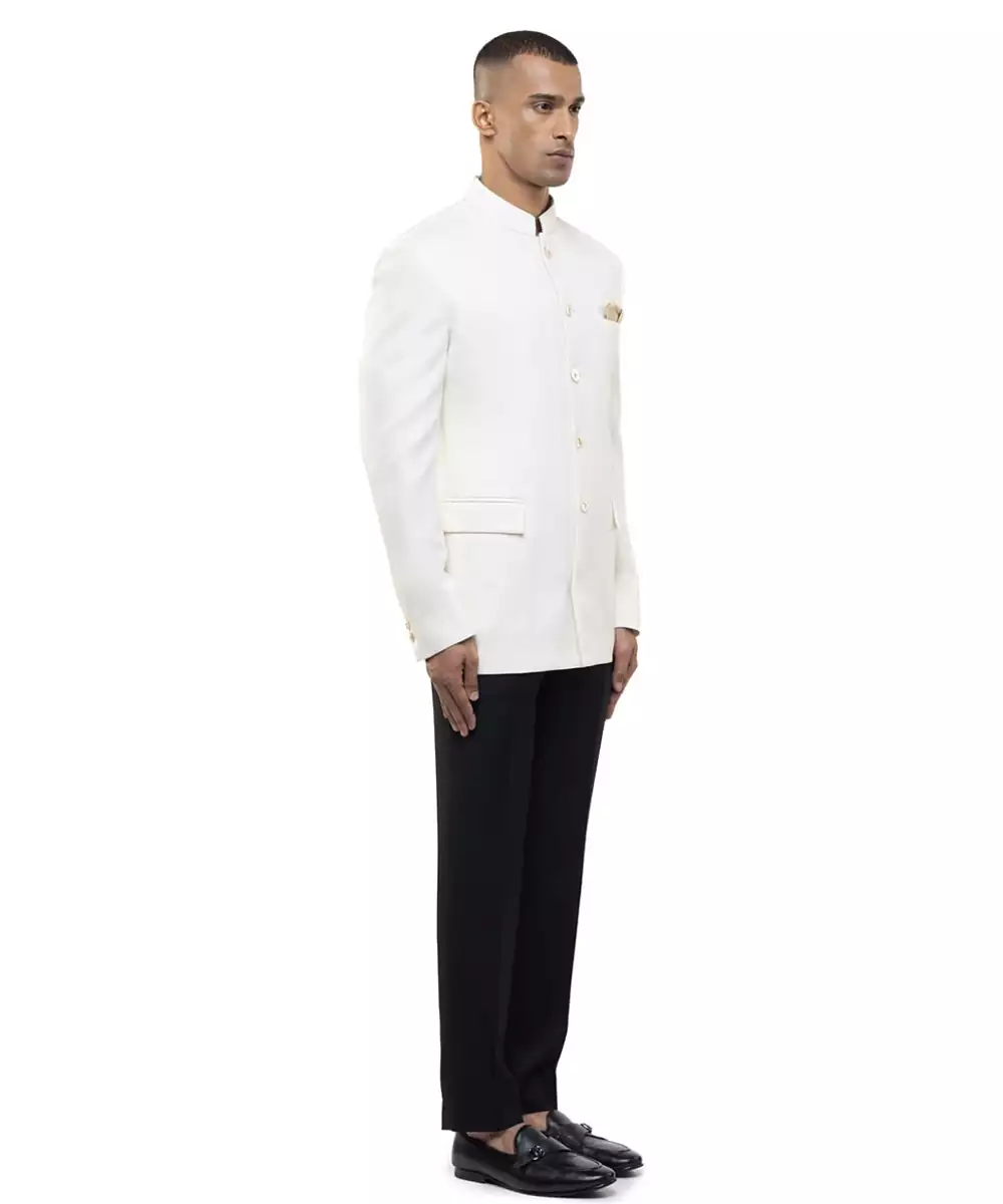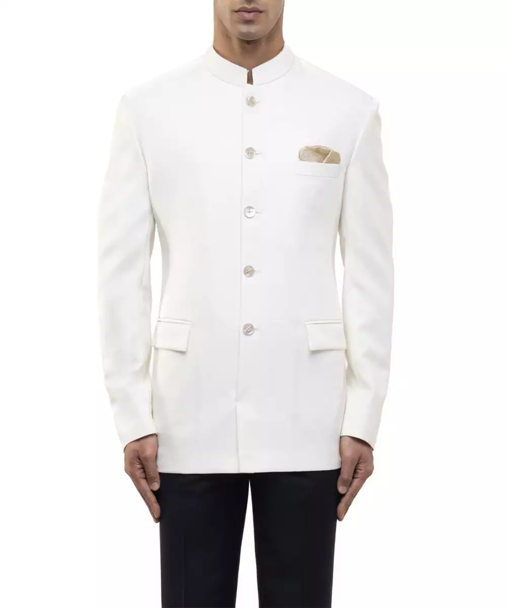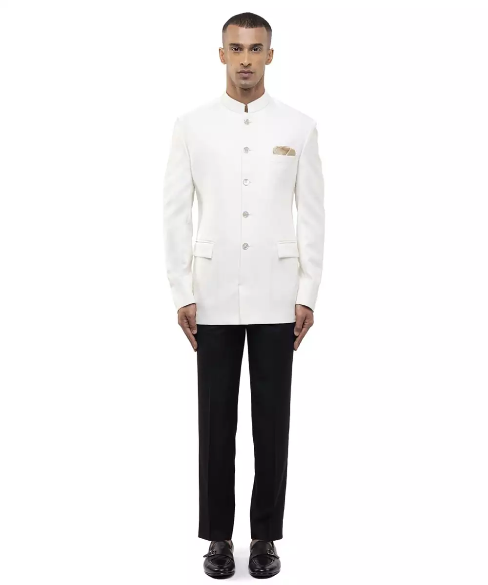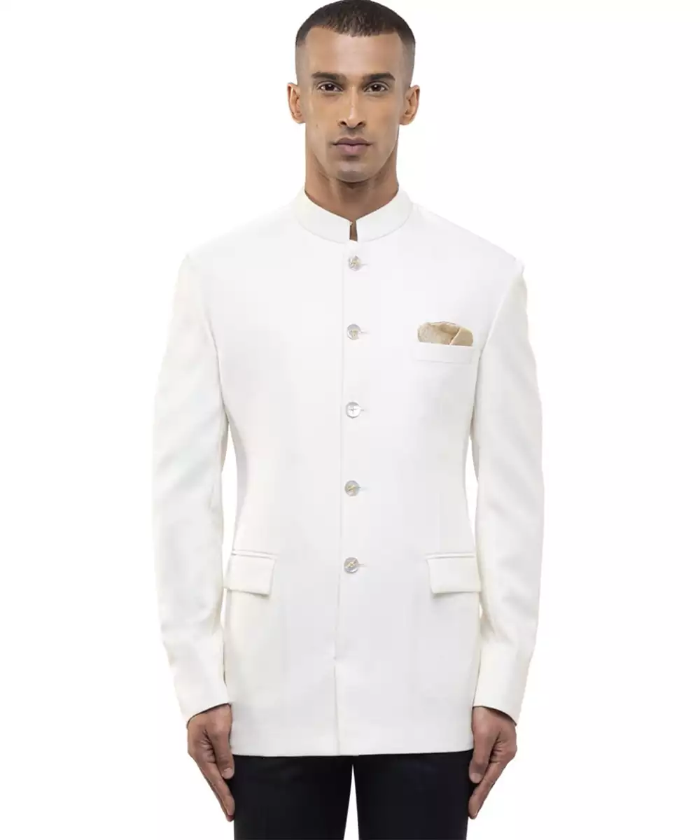 This White Polycotton Bandhgala Set Blends Modern Style With Traditional Elegance. Crafted From A Comfortable Polycotton Fabric, It Offers Durability And A Smooth Finish. Ideal For Festive Occasions And Formal Gatherings, It Provides A Structured Fit, Ease Of Wear, And Timeless Ethnic Appeal.