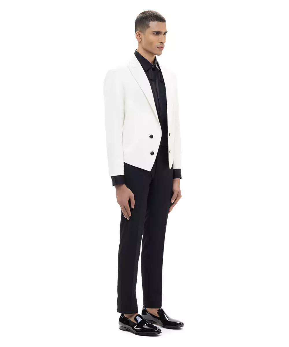 This White Woolen Blend Tuxedo Set Combines Classic Elegance With Winter Ready Comfort. Crafted From A Soft, Durable Woolen Blend, It Offers A Structured, Tailored Fit With A Refined Finish. Perfect For Formal Events And Special Occasions, It Provides Warmth, Sophistication, And Timeless Formal Appeal.
