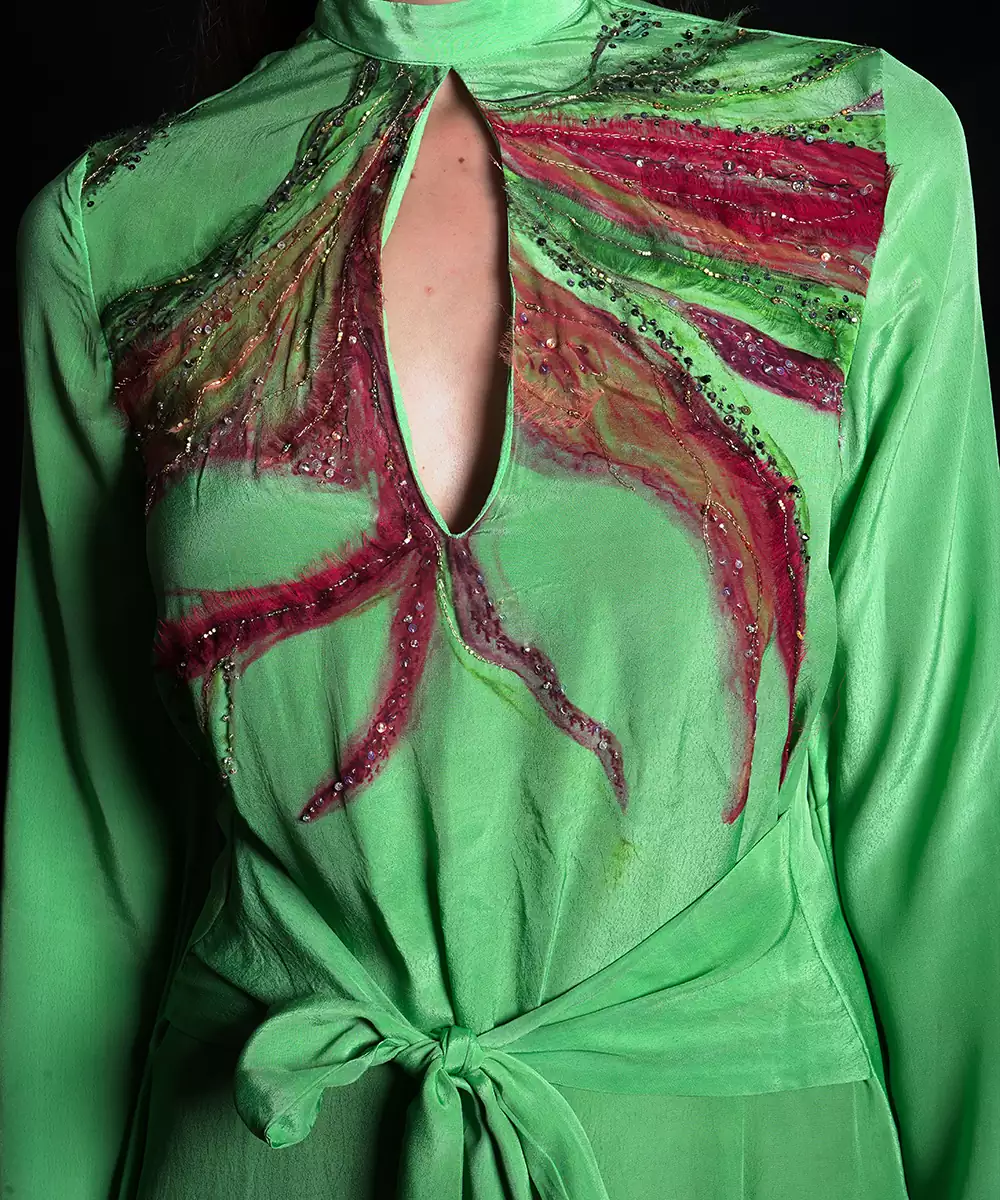 Absinthe Green Printed Dress Featuring A High Slit And Embroidery Highlights Colour : Green