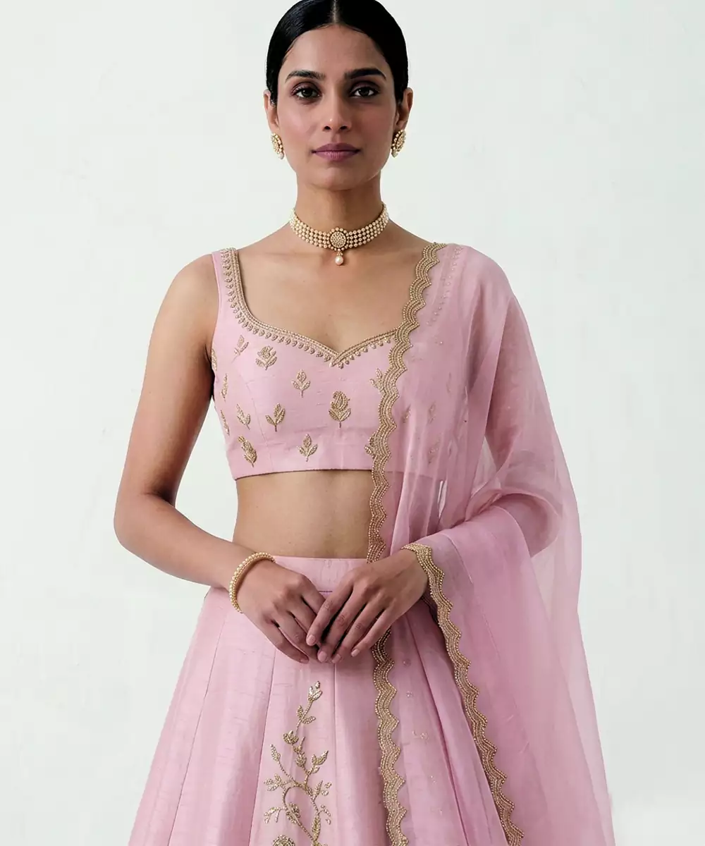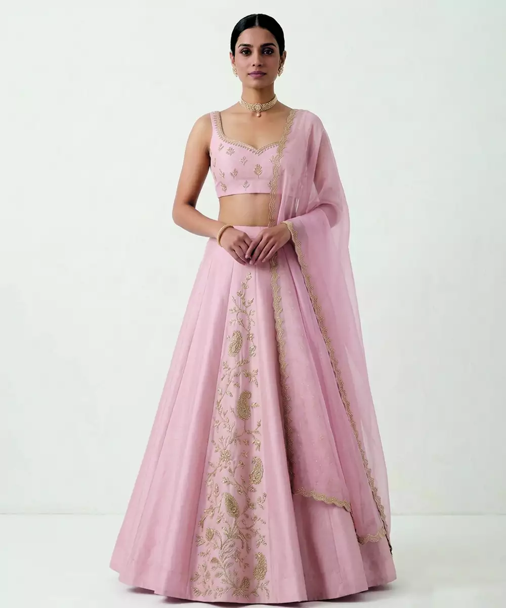 Baby Pink Embroidered Raw Silk Lehenga Set