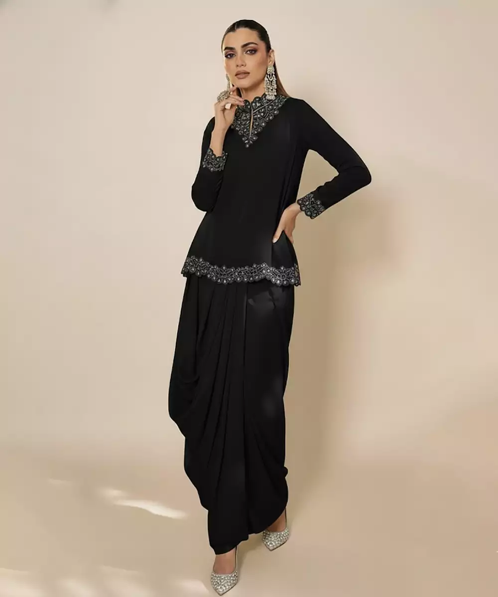 Lightweight Georgette Meets Delicate Embroidery In This Graceful Black Kurta Set. The Airy Fabric Offers Movement And Comfort, While The Detailed Work Adds Festive Appeal. Ideal For Day To Night Occasions, It Blends Elegance And Ease, Making It A Versatile Choice For Celebrations And Special Gatherings.