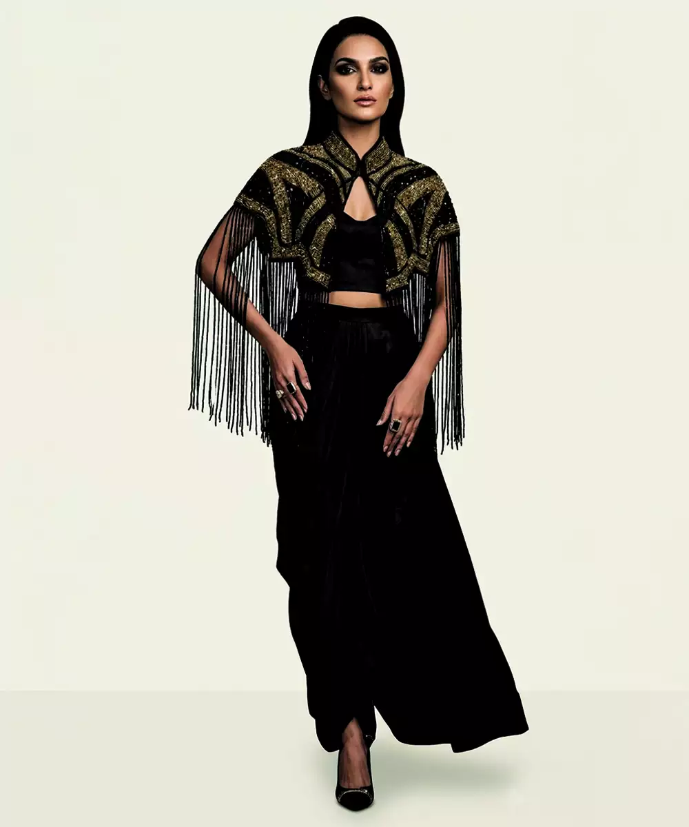 Components: 1 Tube Top / 1 Draped Skirt / 1 Cape