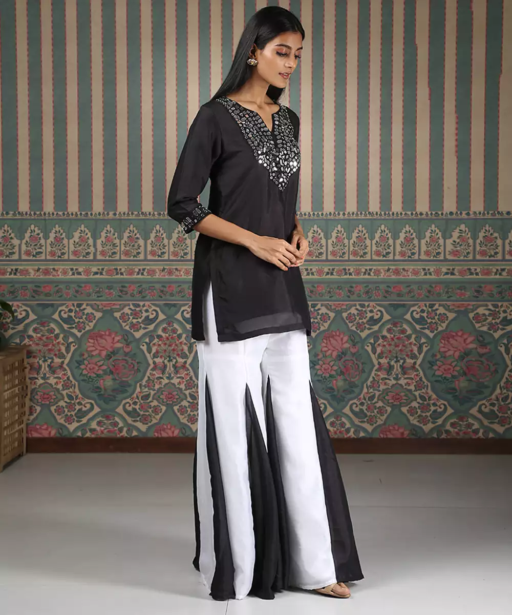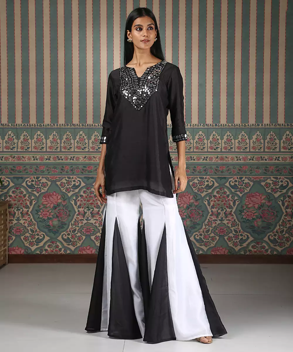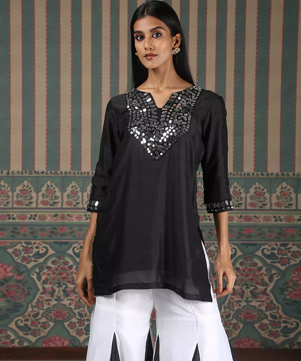 This Black Plain Silk Blend Kurta Set Showcases Understated Elegance With A Rich, Festive Appeal. Crafted From A Smooth Silk Blend Fabric, It Offers A Refined Finish And Graceful Drape. Perfect For Celebrations And Special Occasions, It Provides Comfort, A Flattering Silhouette, And Timeless Ethnic Style.