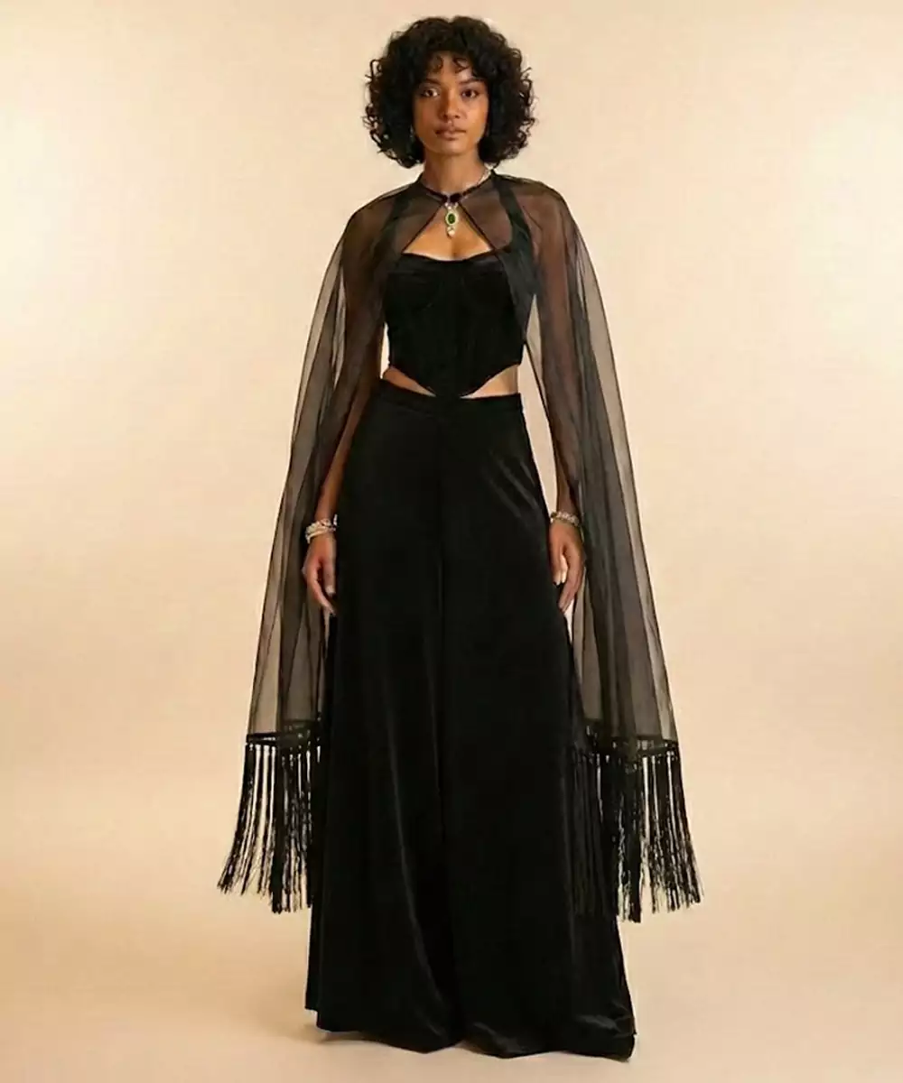 This Black Velvet Co Ord Set Is All About Plush Texture And Effortless Sophistication. The Rich Fabric Adds Depth And Luxury, While The Coordinated Design Keeps It Modern. Perfect For Winter Festivities And Evening Events Where Comfort Meets Statement Style.