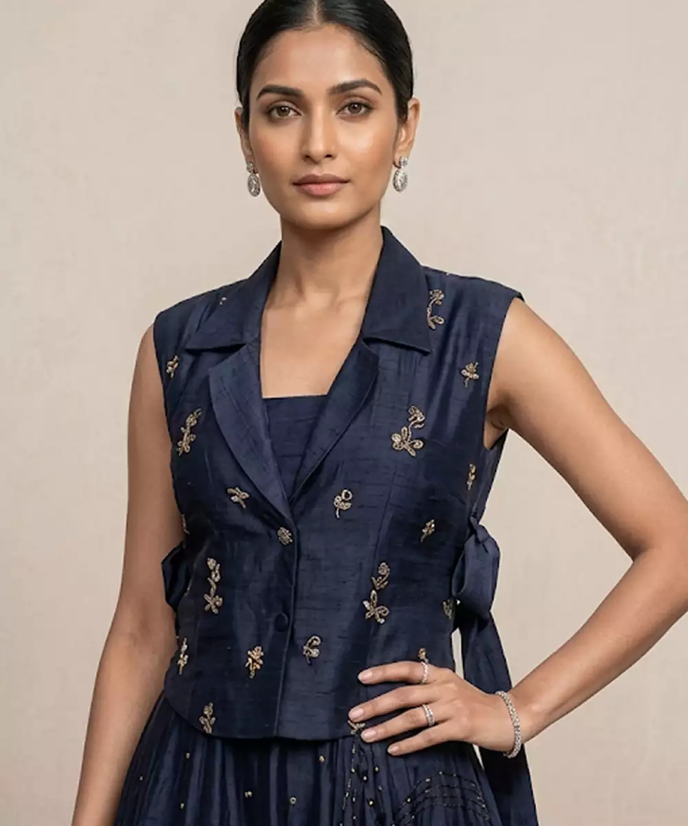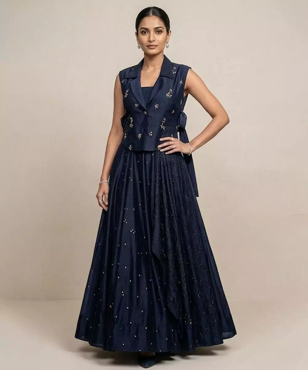 Components: 1 Crop Top / 1 Lehenga / 1 Jacket