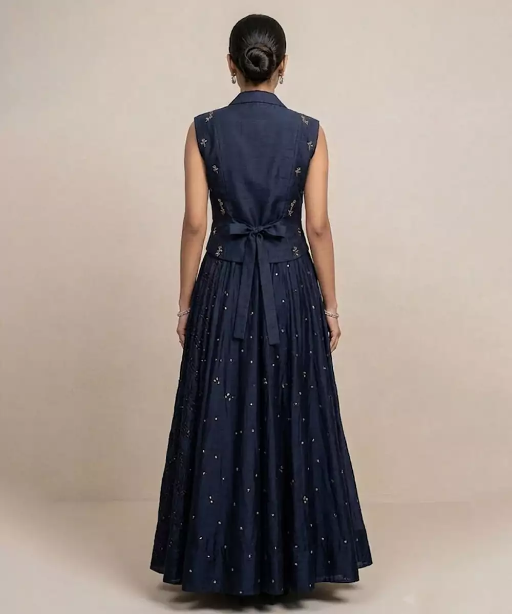 Crafted In Luxurious Raw Silk, This Blue Lehenga Set Features Intricate Embroidery That Enhances Its Regal Appeal. The Structured Silhouette And Rich Texture Create A Graceful Drape, Perfect For Weddings And Festive Occasions. Pair It With Statement Jewelry To Achieve A Timeless And Elegant Look.