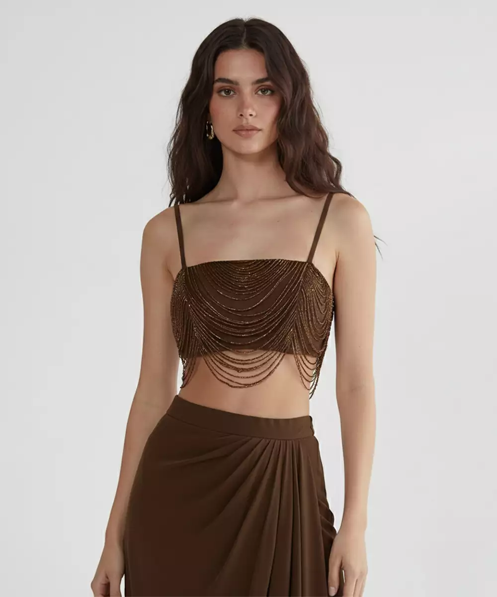 Warm Brown Silk Paired With Delicate Embroidery Makes This Co Ord Set Both Earthy And Elegant. The Soft Sheen Adds Depth, While The Coordinated Silhouette Keeps It Contemporary. A Stylish Option For Festive Occasions, Family Gatherings, And Understated Celebratory Dressing.