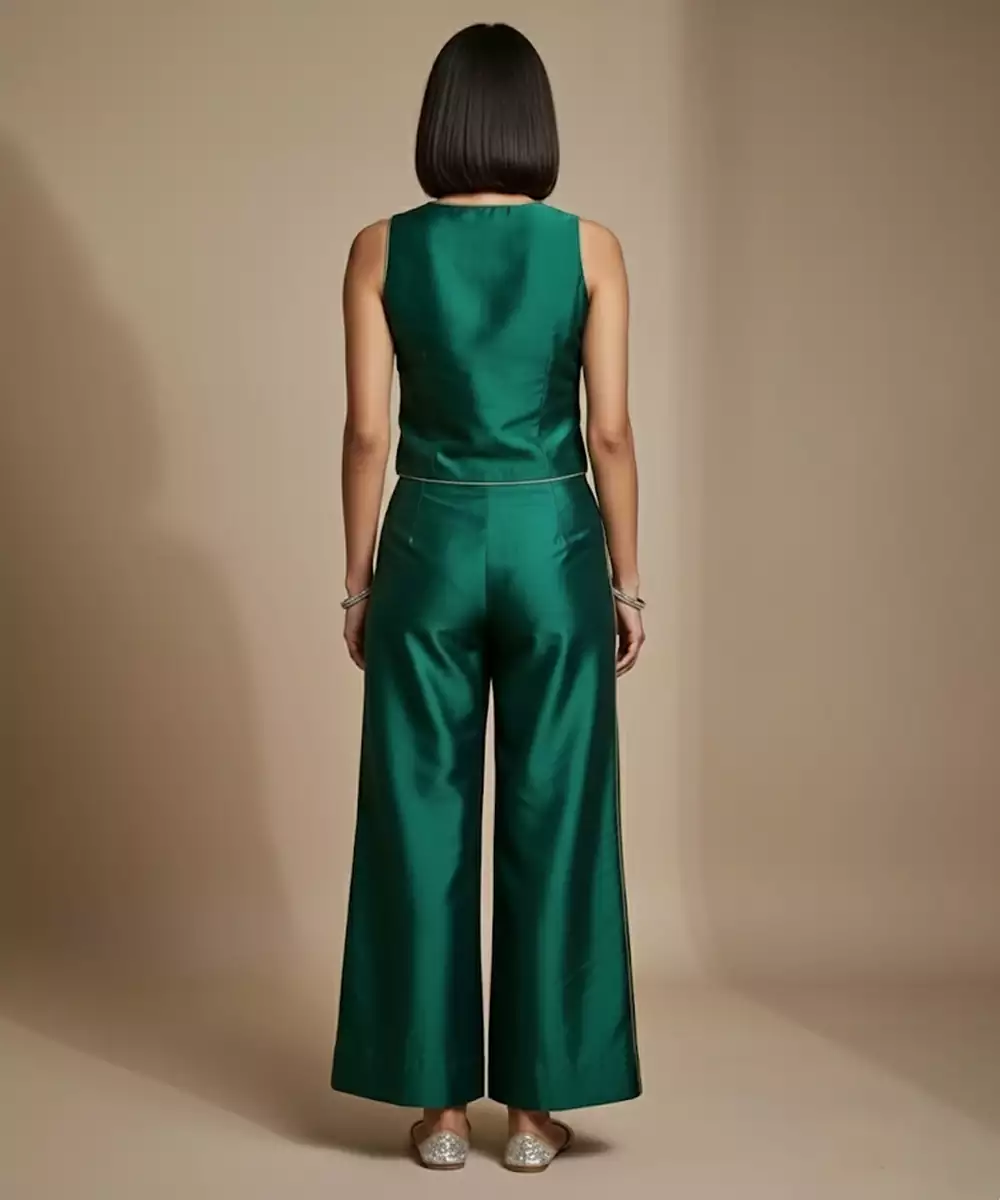 Emerald Green Embroidered Satin Co Ord Set