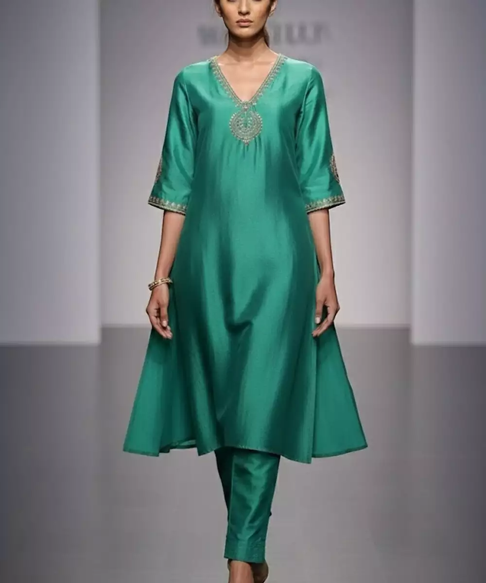 Green Chanderi Embroidered Kurta Set