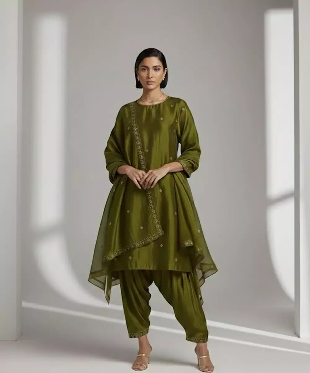 Green Chanderi Embroidered Kurta Set
