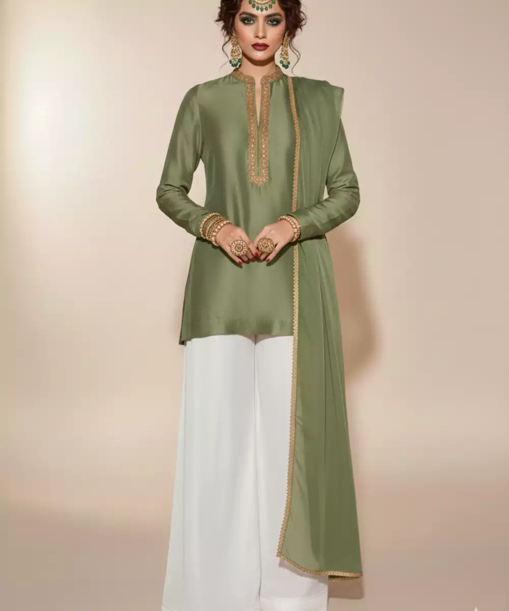 Radiate Effortless Elegance In This Green Embroidered Crepe Kurta Set. The Lightweight, Fluid Crepe Fabric Offers A Flattering Silhouette, Highlighted By Exquisite Tonal Embroidery And Delicate Beadwork. Featuring A Straight Cut Kurta And Slim Fit Trousers, This Set Blends Modern Comfort With Traditional Charm—Making It An Ideal Choice For Intimate Gatherings Or Daytime Festivities.