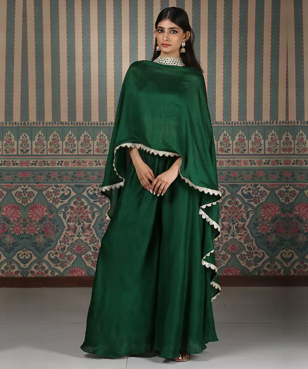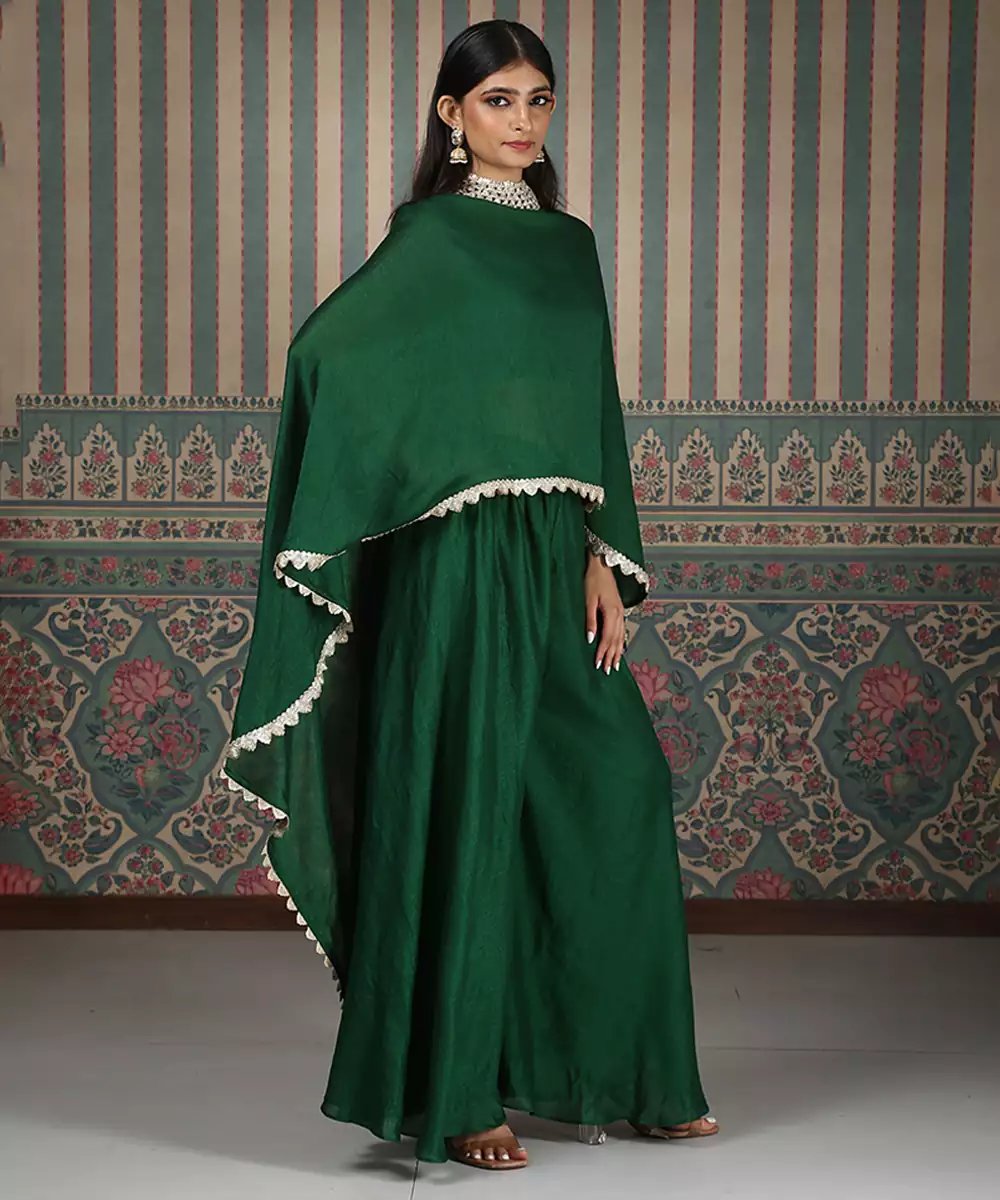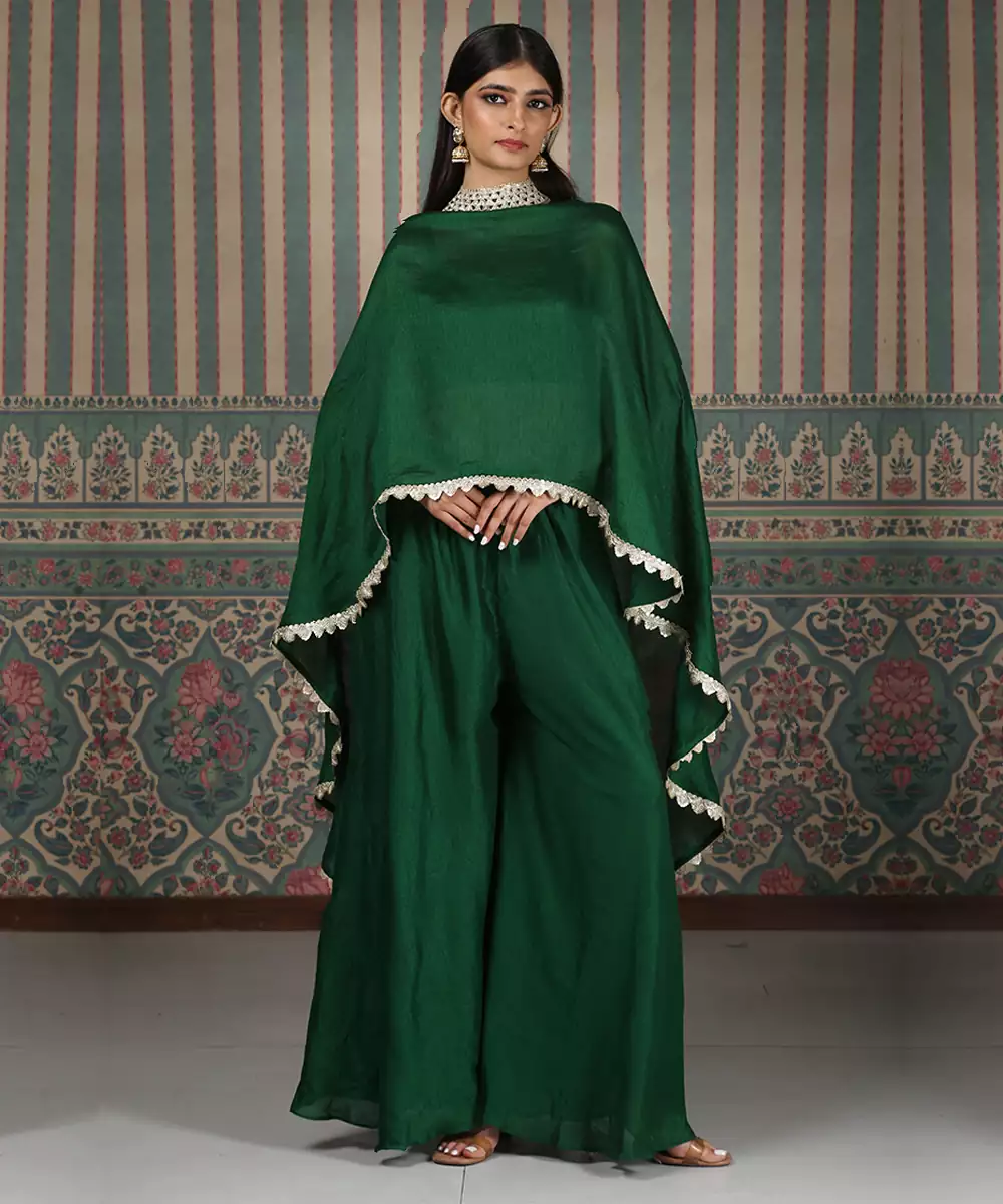 This Green Plain Silk Blend Co Ord Set Reflects Modern Elegance With A Refined, Festive Appeal. Crafted From A Smooth And Luxurious Silk Blend Fabric, It Offers A Graceful Drape And Polished Finish. Perfect For Special Occasions And Gatherings, It Provides Comfort, A Flattering Fit, And Timeless Contemporary Style.