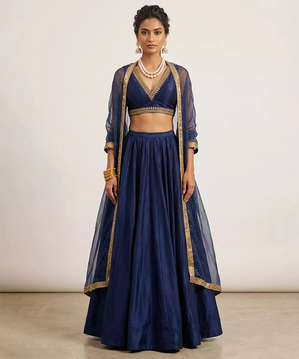 Midnight Blue Silk Lehenga Set