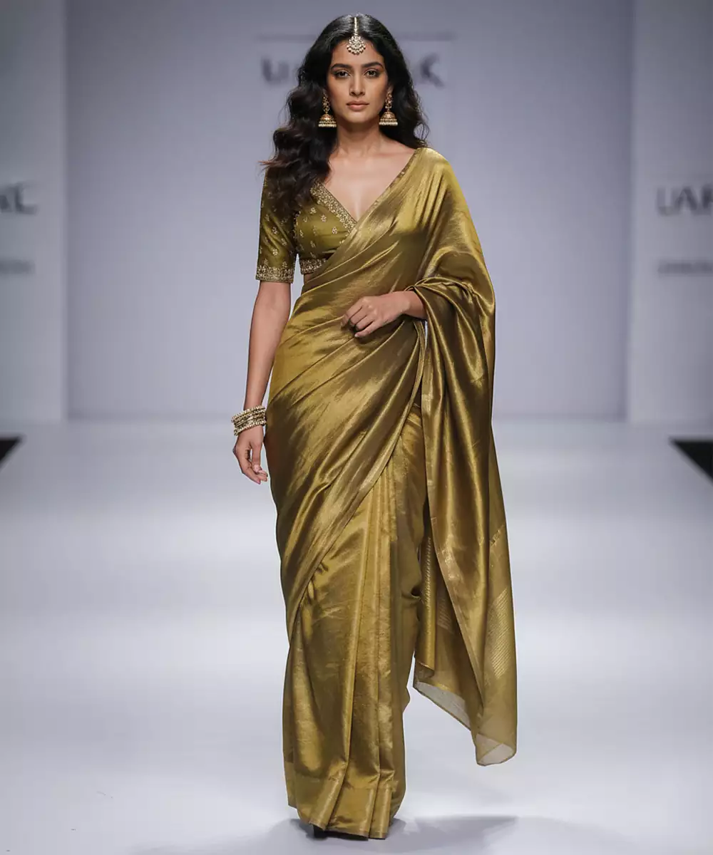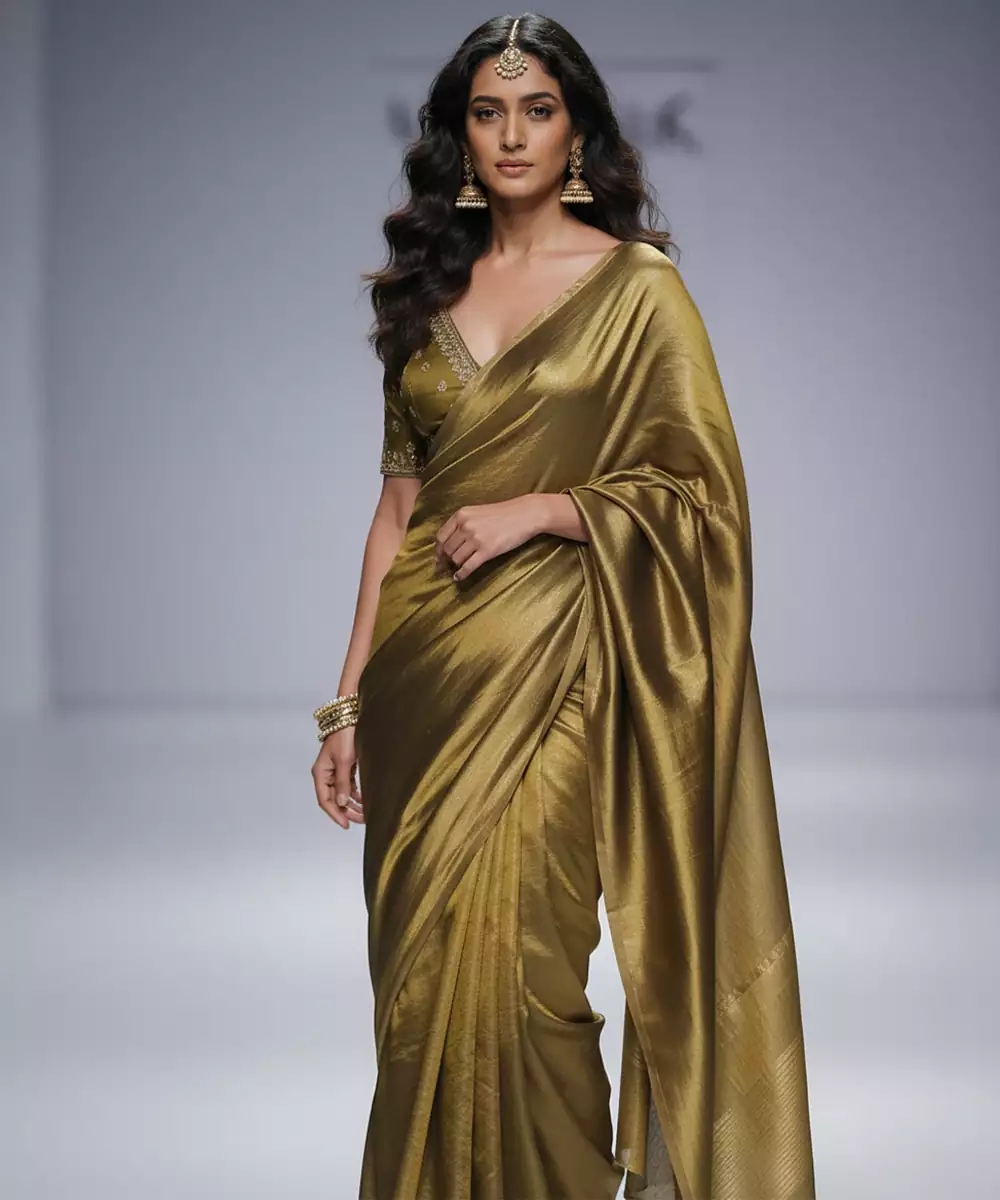 This Olive Green Silk Saree Set Combines Rich Color With Classic Sophistication. The Smooth Silk Fabric Drapes Beautifully, Offering Both Comfort And Elegance. Paired With A Matching Blouse, It Is Ideal For Festive Gatherings, Weddings, And Cultural Celebrations With A Refined Traditional Look.