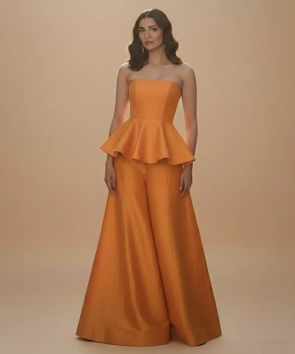 An Orange Satin Co Ord Set Featuring Elegant Woven Detailing For A Polished Festive Look. The Satin Fabric Provides Subtle Shine And Smooth Structure, Creating A Contemporary Silhouette. Ideal For Celebratory Occasions, This Ensemble Brings Together Vibrant Color And Sophisticated Craftsmanship.