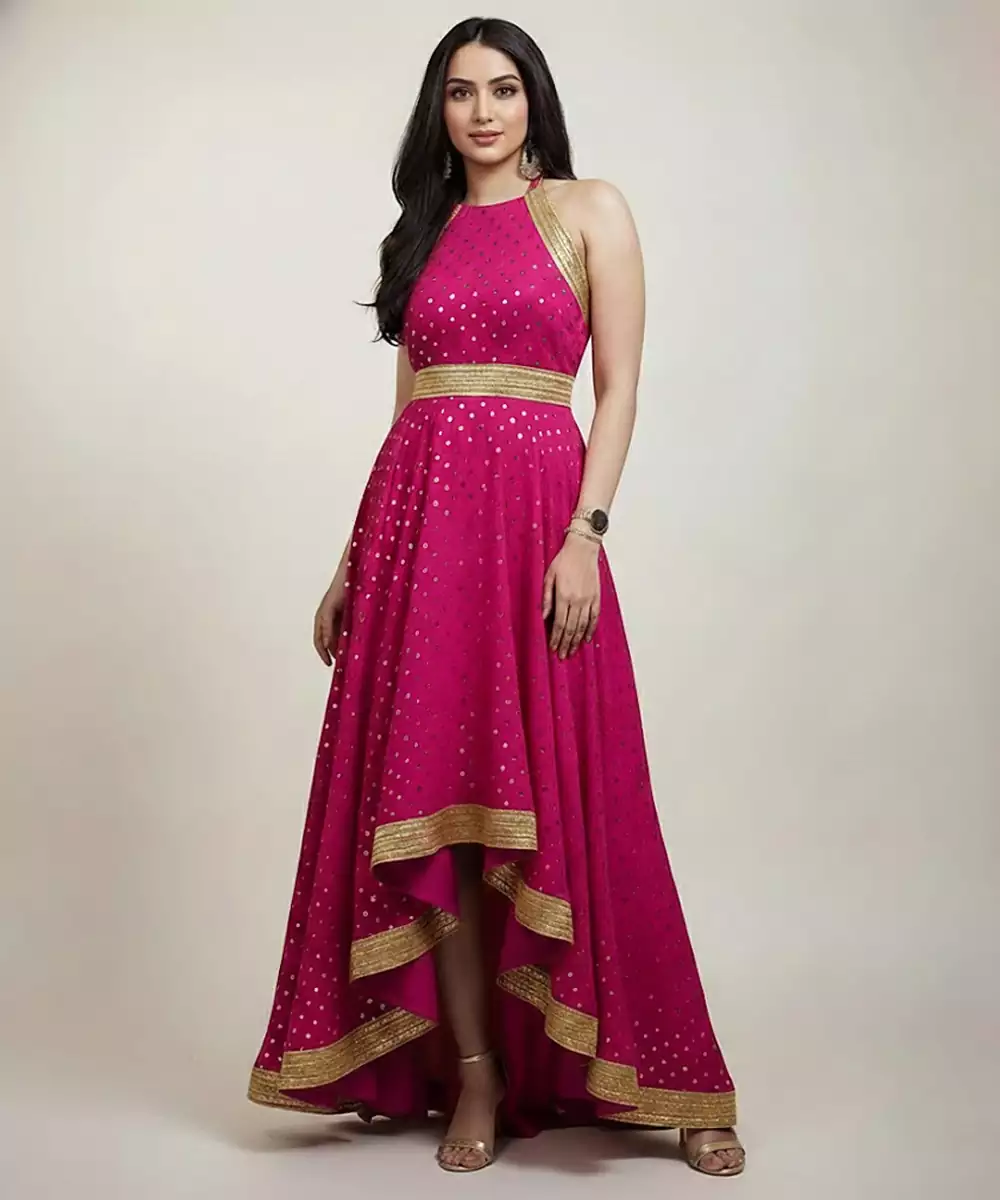 Soft Pink Tones And Delicate Embroidery Create A Romantic, Graceful Gown. The Flowing Silhouette Enhances Femininity, Making It Perfect For Receptions, Festive Evenings, And Special Occasions That Call For Elegance With A Gentle, Celebratory Charm.