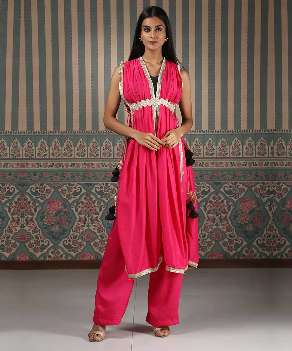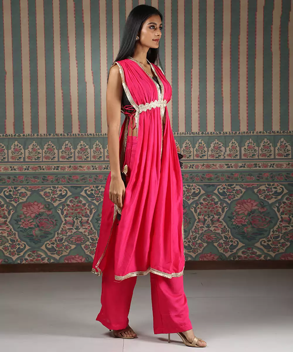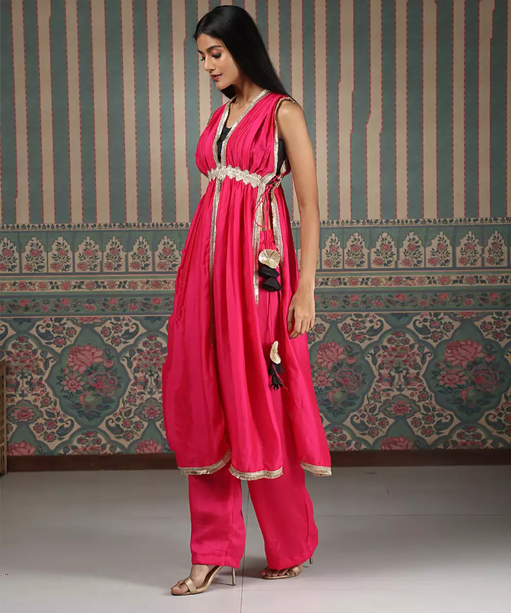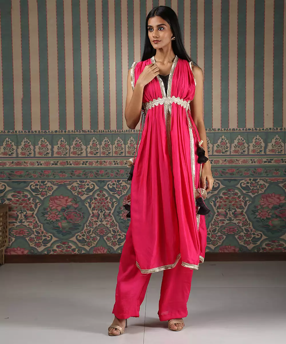 This Pink Embroidered Silk Blend Kurta Set Showcases Graceful Elegance With A Contemporary Touch. Crafted From A Smooth, Luxurious Silk Blend Fabric, It Features Intricate Embroidery That Adds A Refined, Festive Appeal. Perfect For Celebrations And Special Occasions, It Offers Comfort, A Flattering Silhouette, And Timeless Modern Charm.