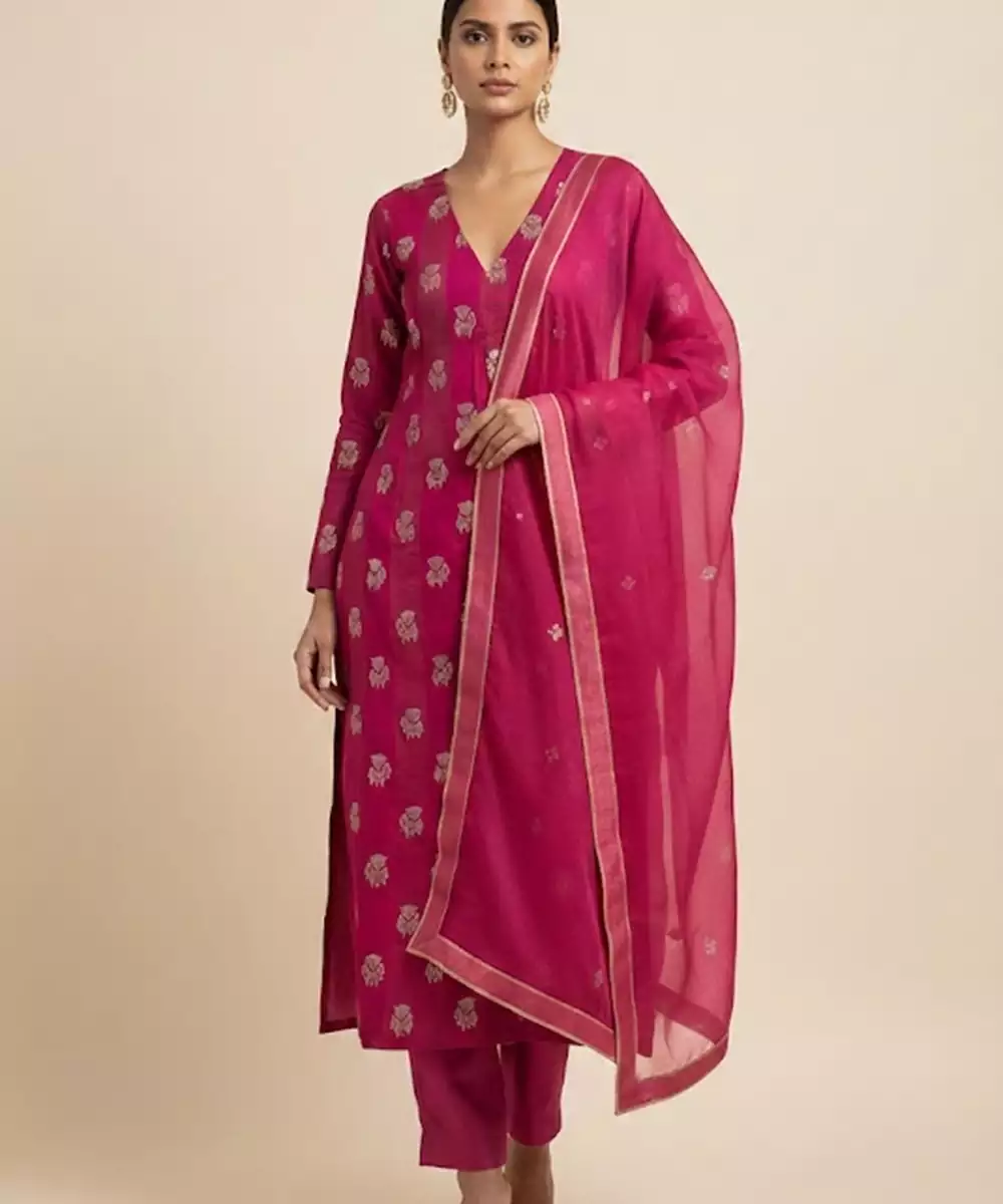 Pink Organza Printed Kurta Set