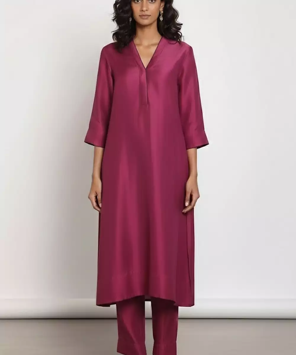 Purple Chanderi Plain Kurta Set