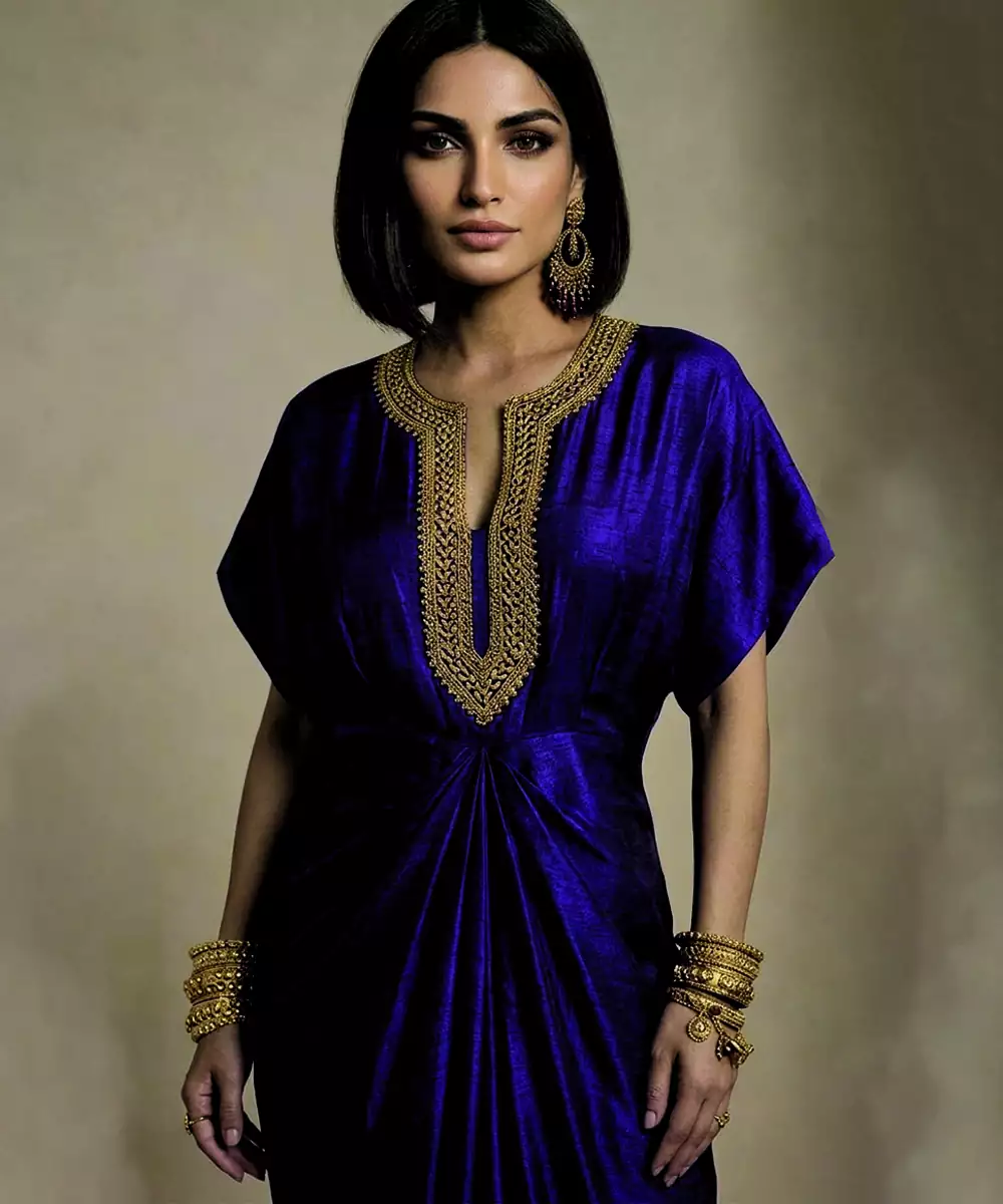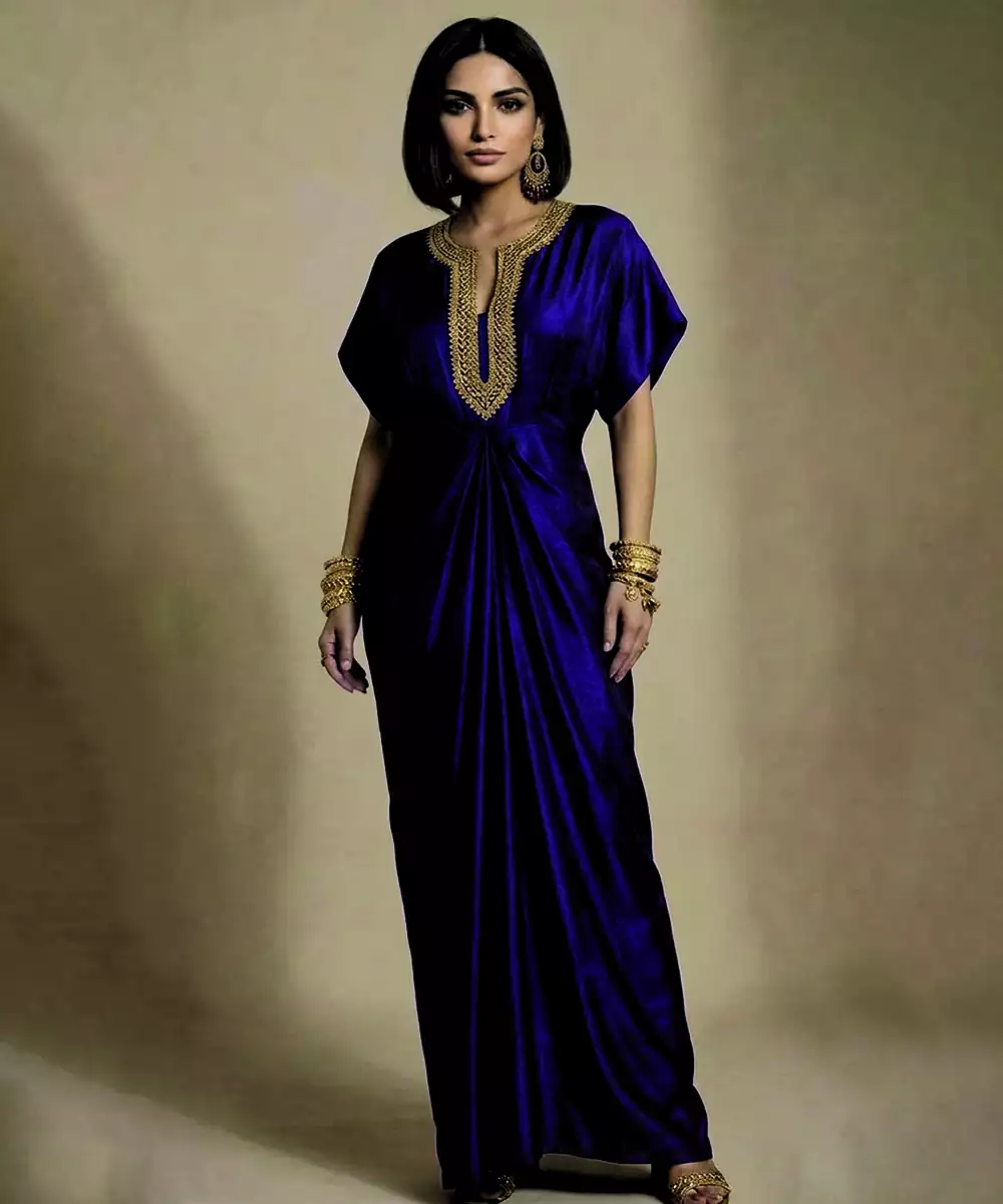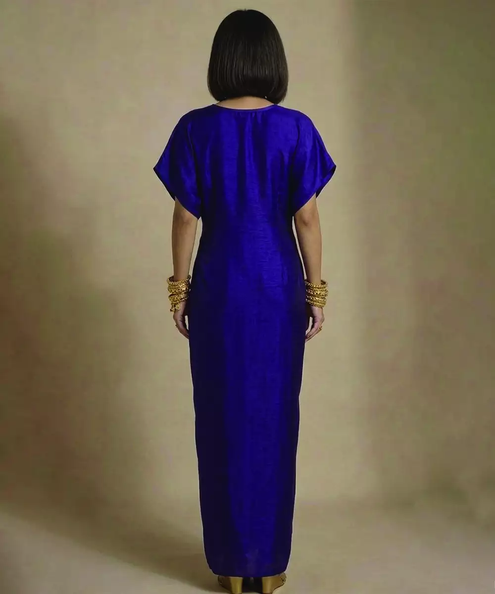 Elegant And Vibrant, This Purple Raw Silk Kaftan Is Adorned With Fine Embroidery That Enhances Its Luxurious Appeal. The Breezy, Relaxed Fit Ensures Comfort While Maintaining A Chic Look. Ideal For Festive Wear Or Special Gatherings, It Can Be Styled With Minimal Accessories For Effortless Sophistication.