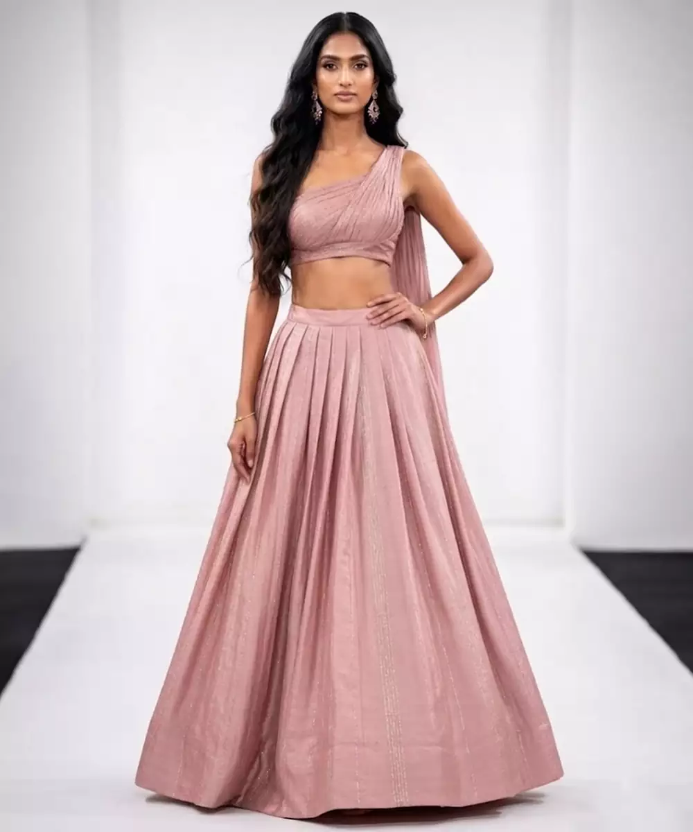 This Purple Raw Silk Indo Western Lehenga Set Showcases A Rich Hue With A Modern Silhouette. The Luxurious Fabric Ensures A Graceful Drape, While The Design Adds A Contemporary Touch. Ideal For Festive Occasions, It Pairs Effortlessly With Bold Accessories For A Stylish And Elegant Appearance.