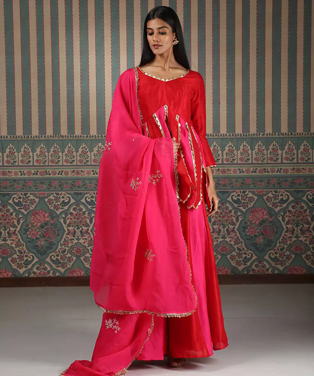 Red Embroidered Silk Blend Sharara Set