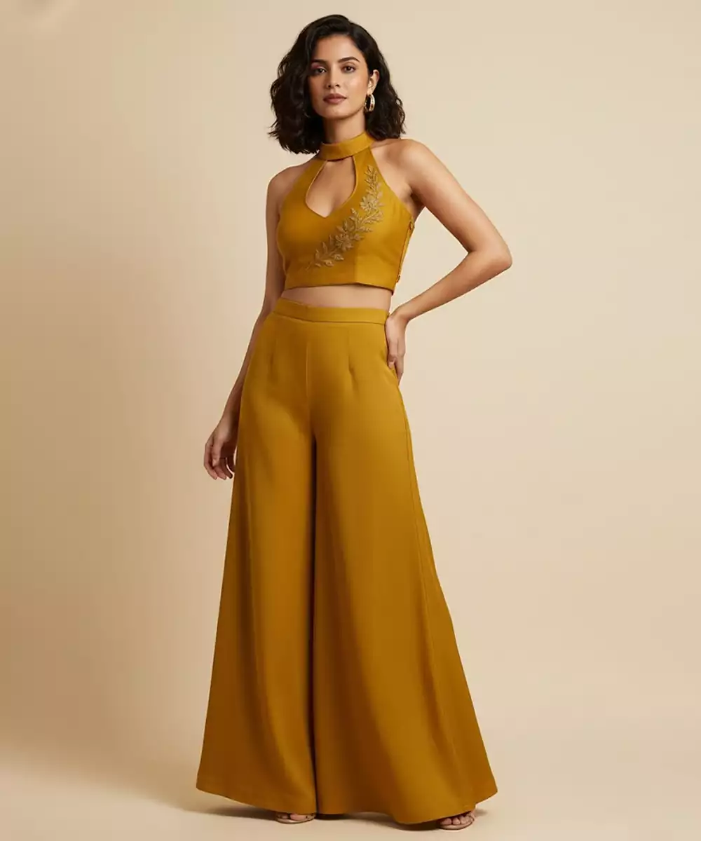 Bright And Festive, This Yellow Silk Co Ord Set Features Elegant Embroidery That Enhances Its Cheerful Tone. The Smooth Texture Offers Graceful Movement, Making It Ideal For Celebrations, Daytime Events, And Festive Occasions That Call For Vibrant Ethnic Style.