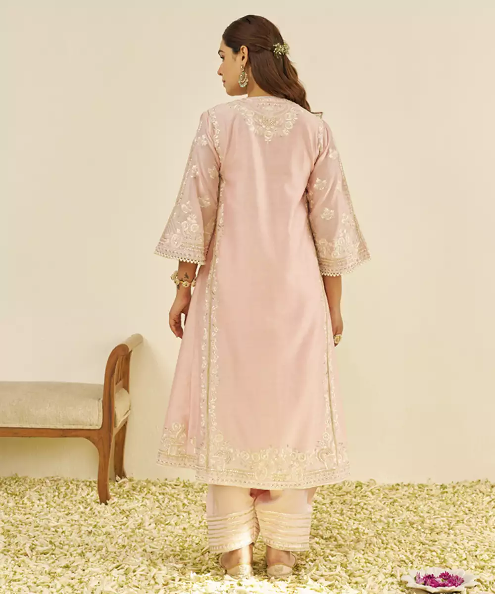 Blush Pink Maziya Long Chauga With Salwar Kurta Chanderi Silk; Bottom Bamberg Satin 1 Chauga / 1 Salwar