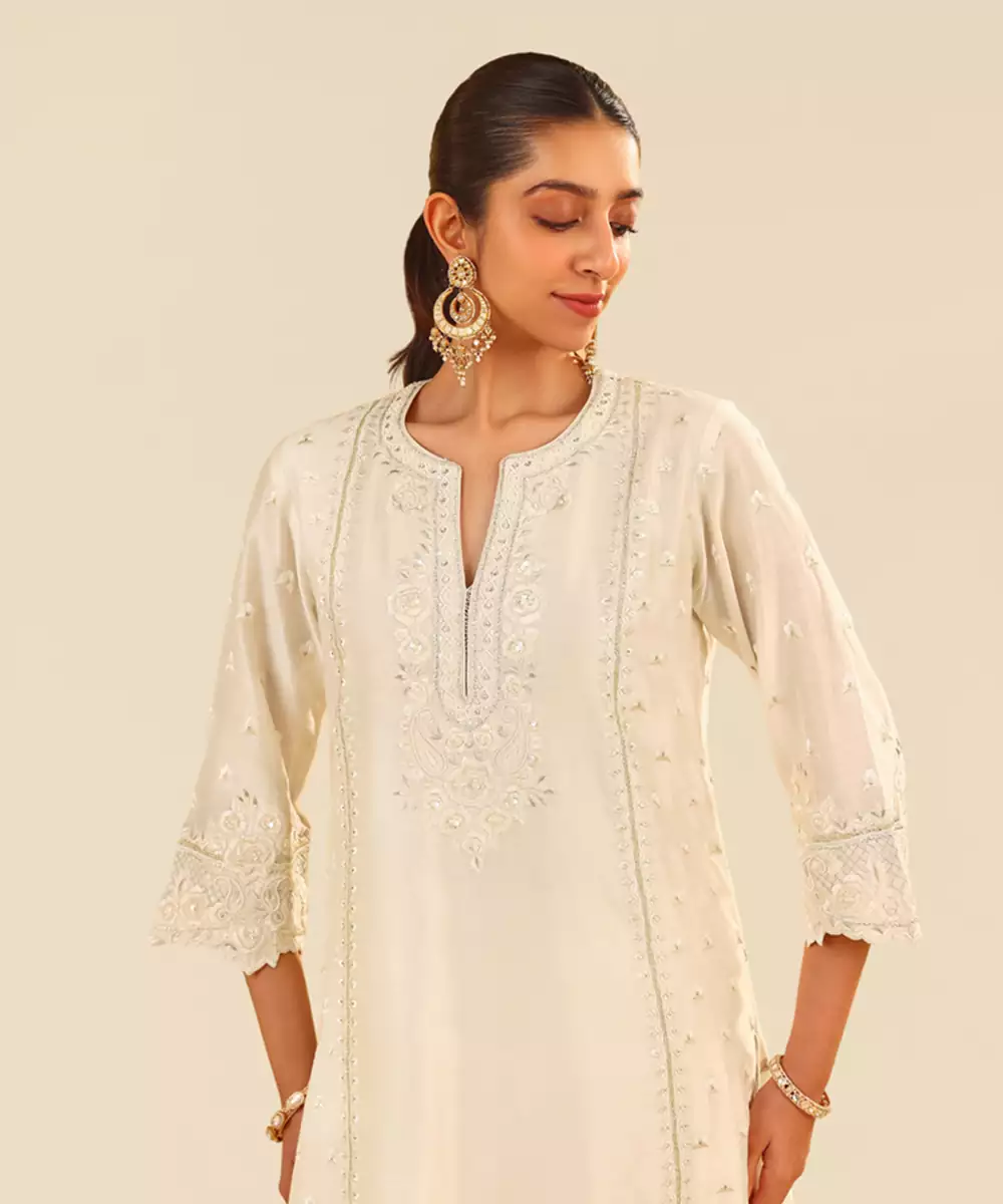 Daisy Ivory Sumaiya A Line Kurta With Palazzo And Dupatta Kurta & Bottom Silk Chanderi; Dupatta Silk Organza 1 Kurta / 1 Palazzo / 1 Dupatta
