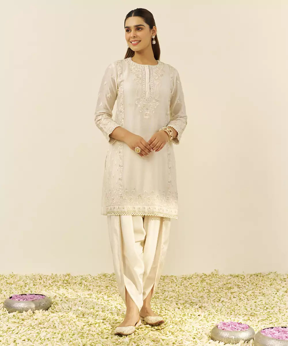 Daisy Ivory Zaisha Short Kurta With Dhoti Kurta Chanderi Silk; Bottom Bamberg Satin 1 Kurta / 1 Dhoti