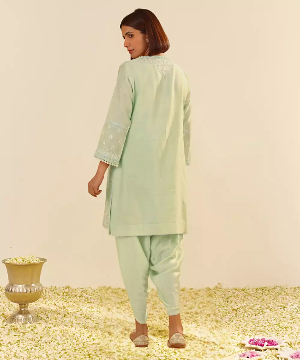 Mint Green Zahra Short Kurta With Dhoti Kurta Chanderi Silk; Bottom Bamberg Satin 1 Kurta / 1 Dhoti