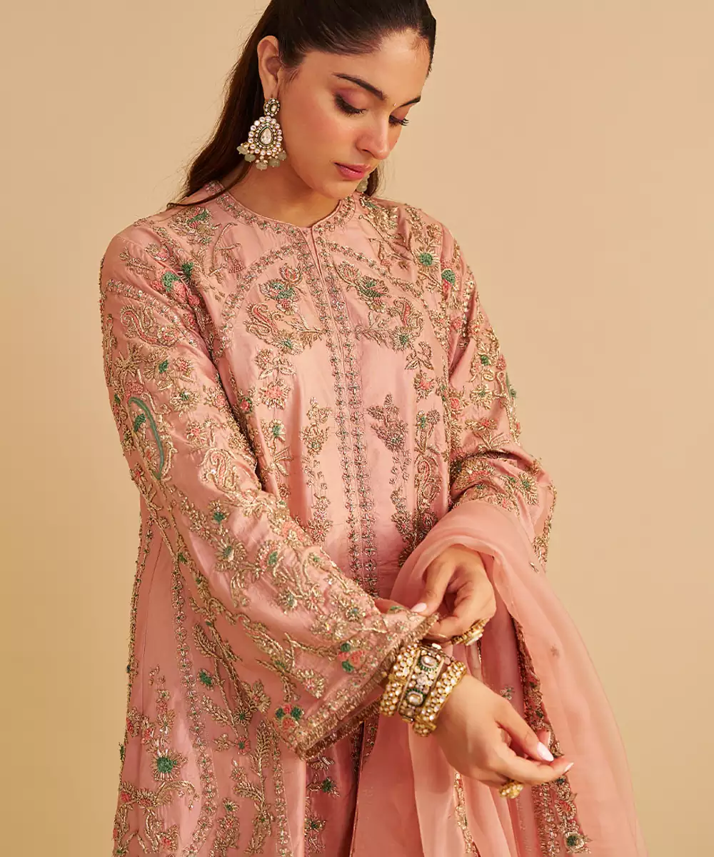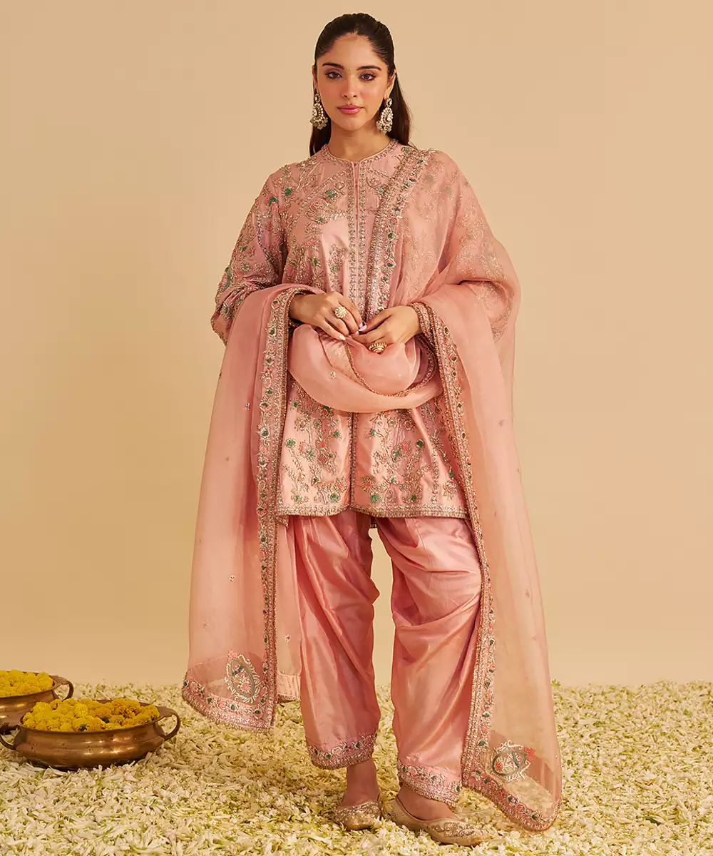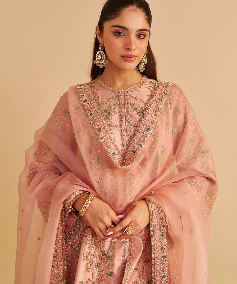 This Pink Embroidered Silk Kurta Set With Dupatta Exudes Elegance And Festive Sophistication. Crafted From Luxurious Silk, It Features Intricate Embroidery That Enhances Its Refined Appeal. The Gracefully Tailored Kurta Paired With Coordinated Bottoms And A Matching Dupatta Creates A Regal Silhouette, Perfect For Weddings, Celebrations, Or Special Occasions.