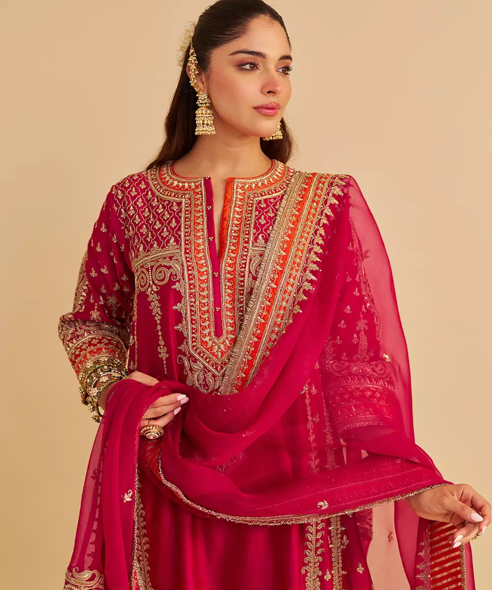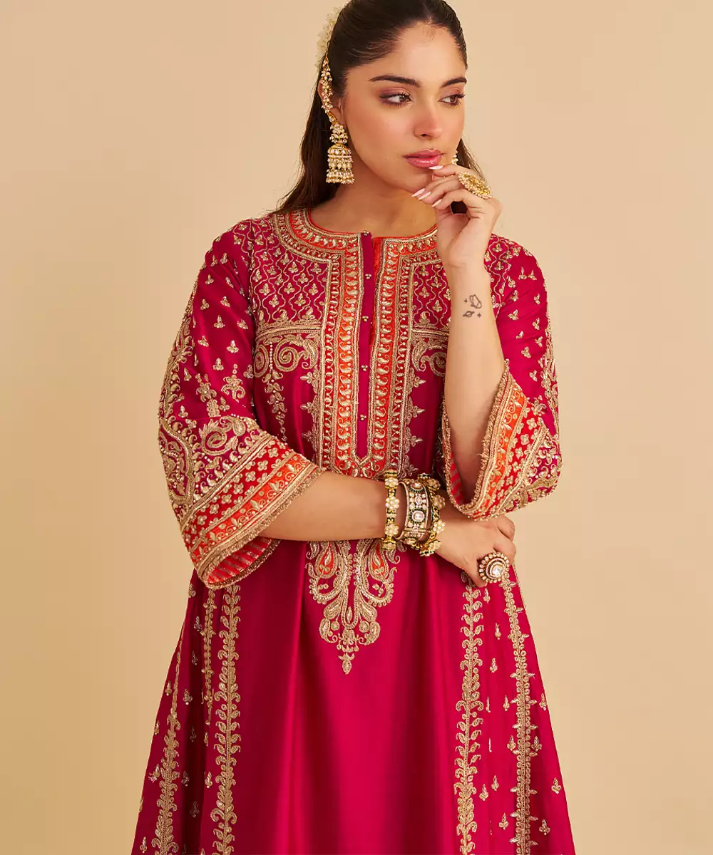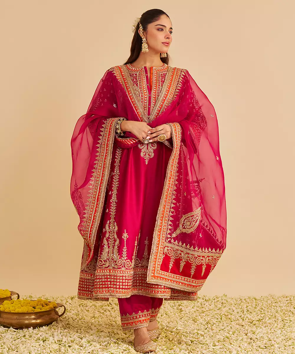 This Pink Embroidered Silk Kurta Set With Dupatta Exudes Elegance And Festive Sophistication. Crafted From Luxurious Silk, It Features Intricate Embroidery That Enhances Its Refined Appeal. The Gracefully Tailored Kurta Paired With Coordinated Bottoms And A Matching Dupatta Creates A Regal Silhouette, Perfect For Weddings, Celebrations, Or Special Occasions.