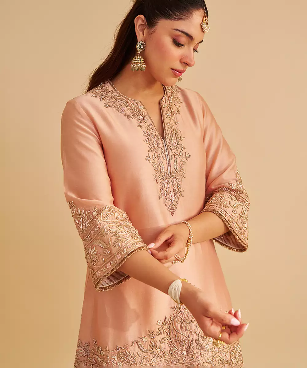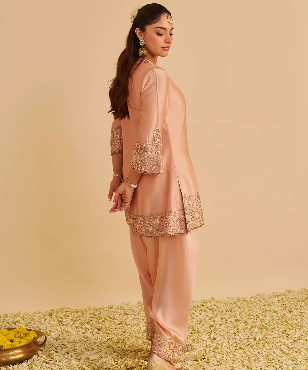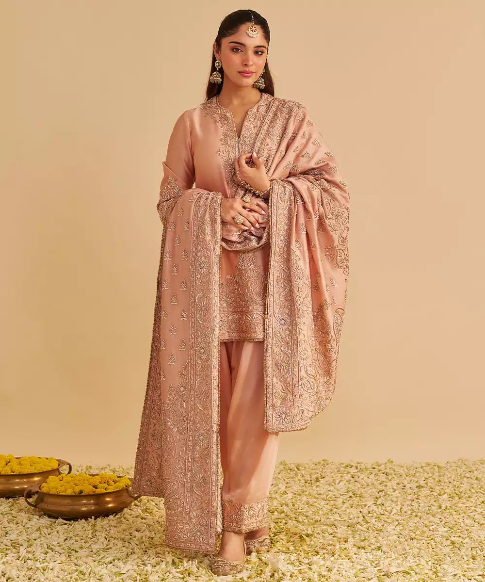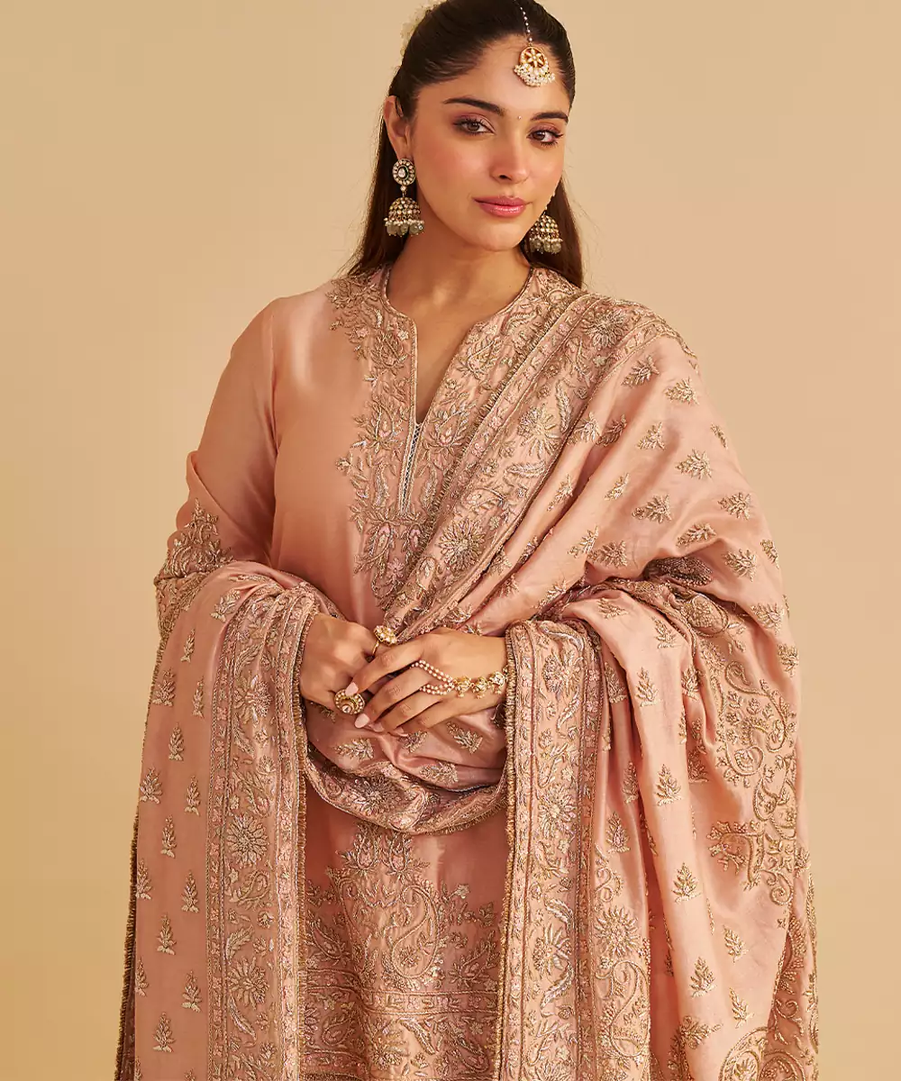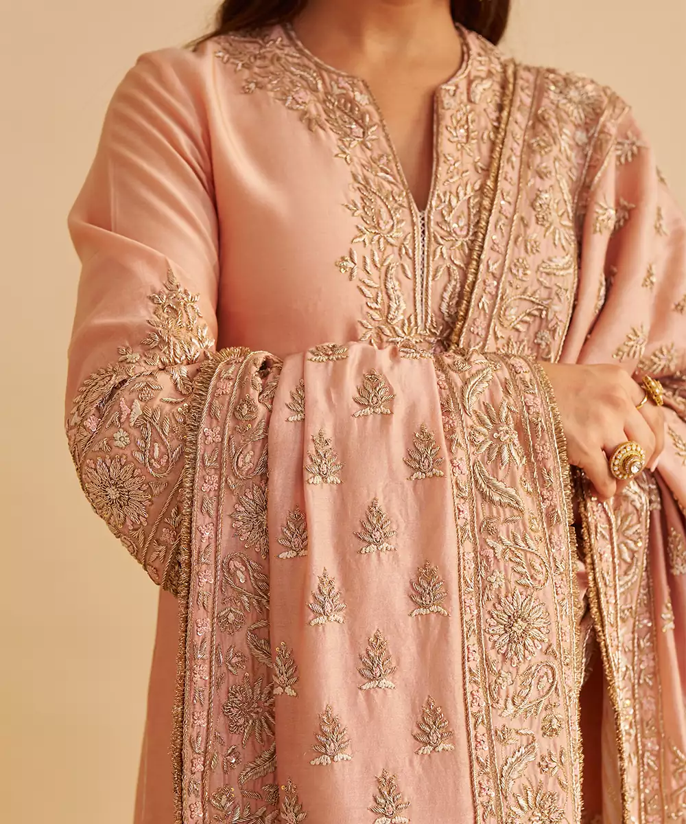 This Rose Embroidered Silk Kurta Set With Dupatta Exudes Elegance And Festive Sophistication. Crafted From Luxurious Silk, It Features Intricate Embroidery That Enhances Its Refined Appeal. The Gracefully Tailored Kurta Paired With Coordinated Bottoms And A Matching Dupatta Creates A Regal Silhouette, Perfect For Weddings, Celebrations, Or Special Occasions.