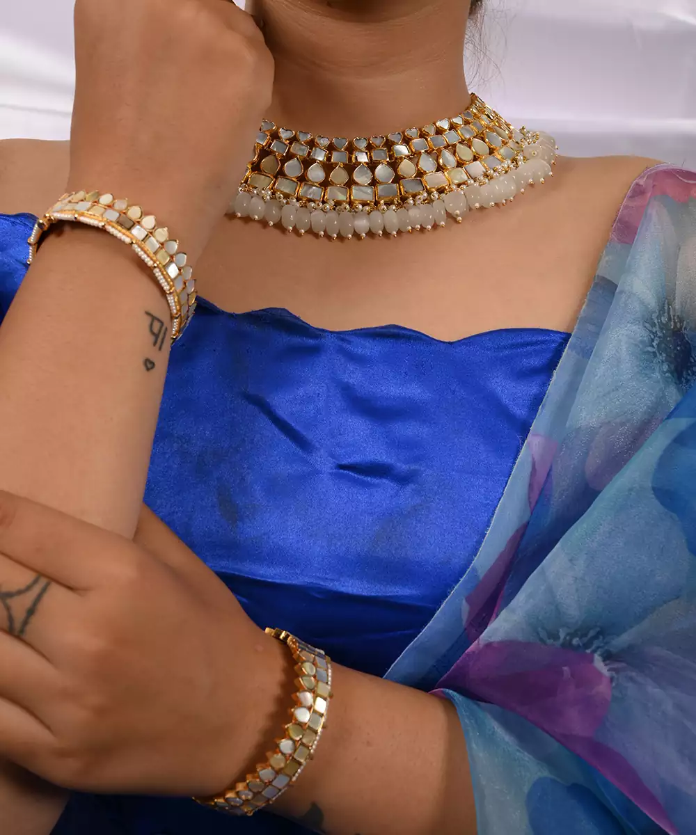 Shlok Jewels Jadau Kundan Jewellery Is Set In Copper Base With Real Kundan Stones In Silver Foil Setting Dipped In 18kt Gold Plating, Finished In Precious And Semi Precious Stones And Natural Gem Stones