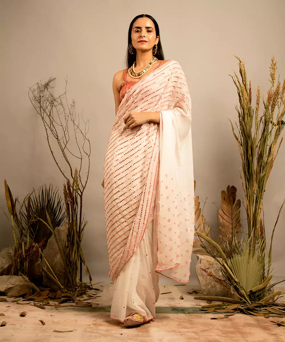 Peach Blouse With Peach And Navy Blue Ombre Saree