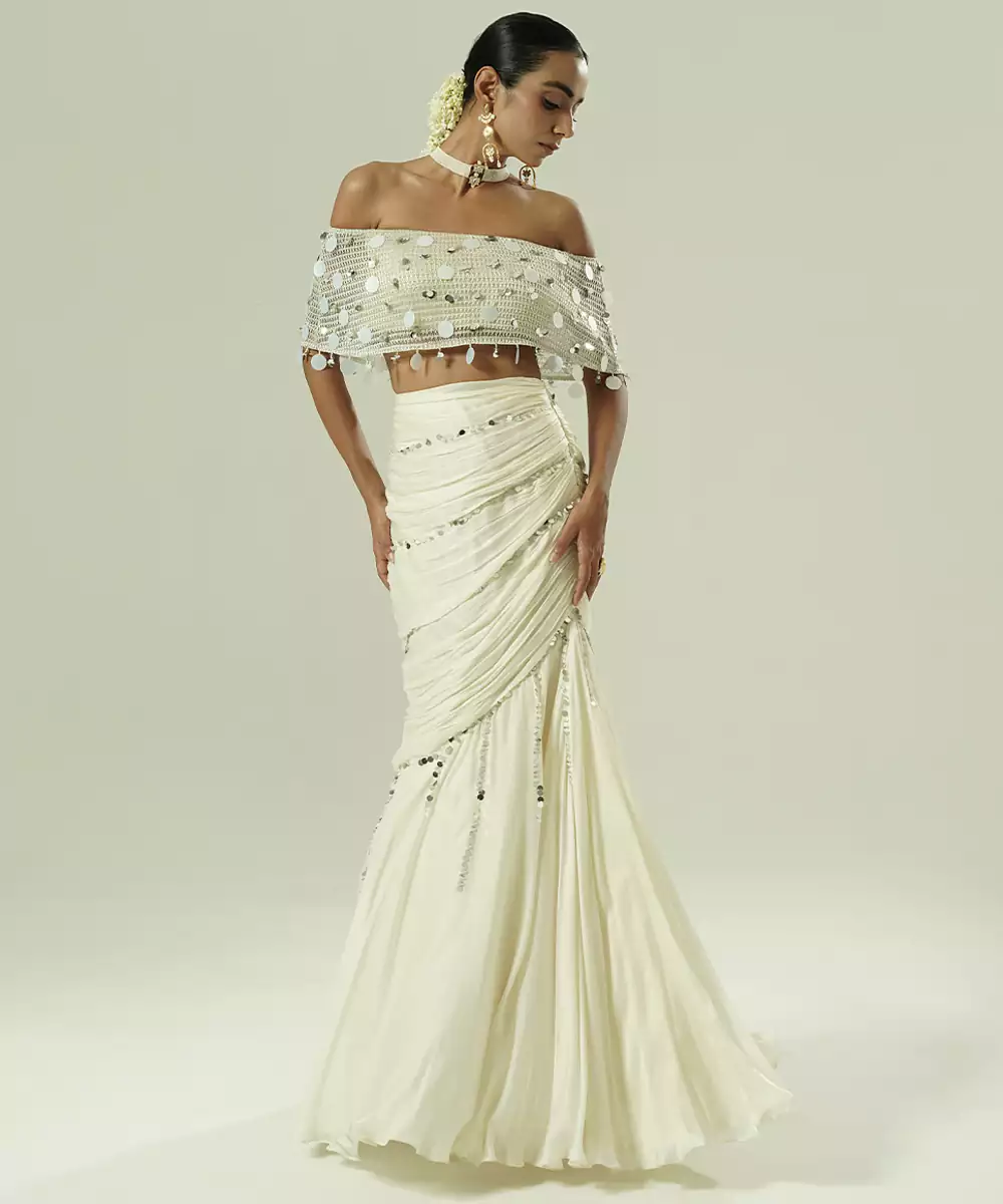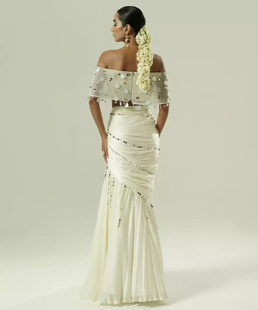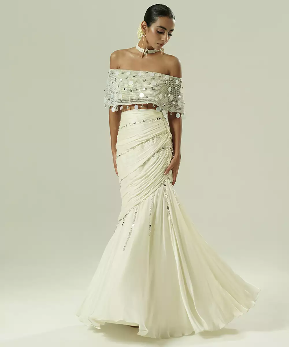 This Ivory Embroidered Georgette Lehenga Set Exudes Soft Elegance With Its Lightweight, Flowy Georgette Fabric And Intricate Embroidery. The Subtle Ivory Tone Adds A Refined Charm, Making It Ideal For Festive Occasions, Celebrations, And Special Events. Stylish And Comfortable, This Ensemble Blends Modern Flair With Timeless Sophistication.