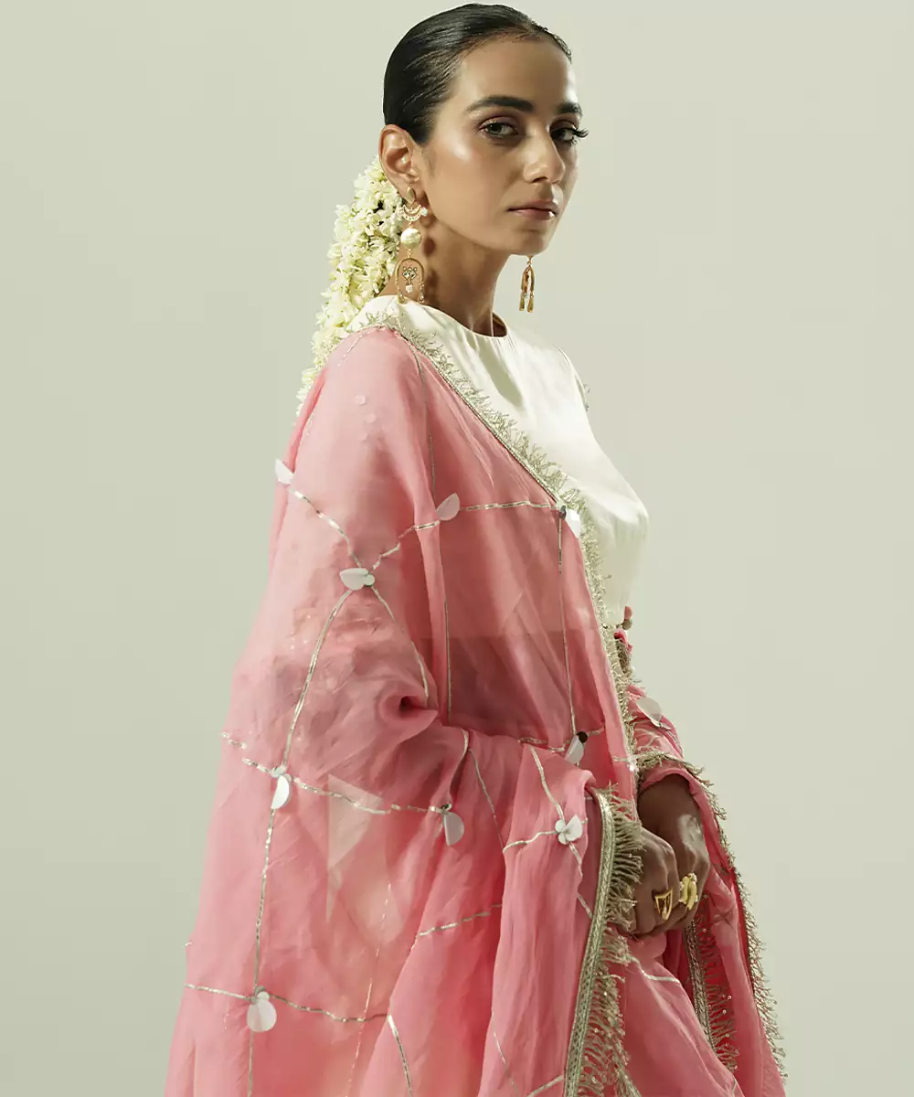 This Ivory Embroidered Georgette Lehenga Set Exudes Graceful Sophistication With Its Airy Fabric And Intricate Embroidery. The Lightweight Georgette Lehenga Pairs Beautifully With A Delicately Crafted Blouse And Dupatta, Creating An Elegant Silhouette Ideal For Festive Events, Weddings, And Special Celebrations. A Perfect Blend Of Tradition And Contemporary Charm.