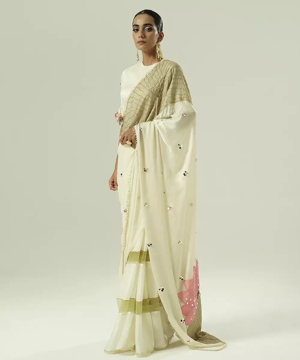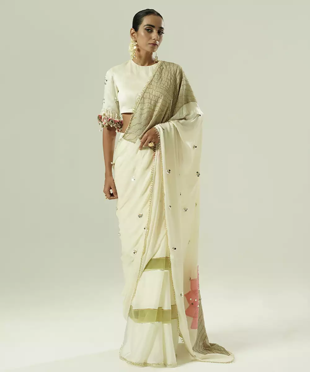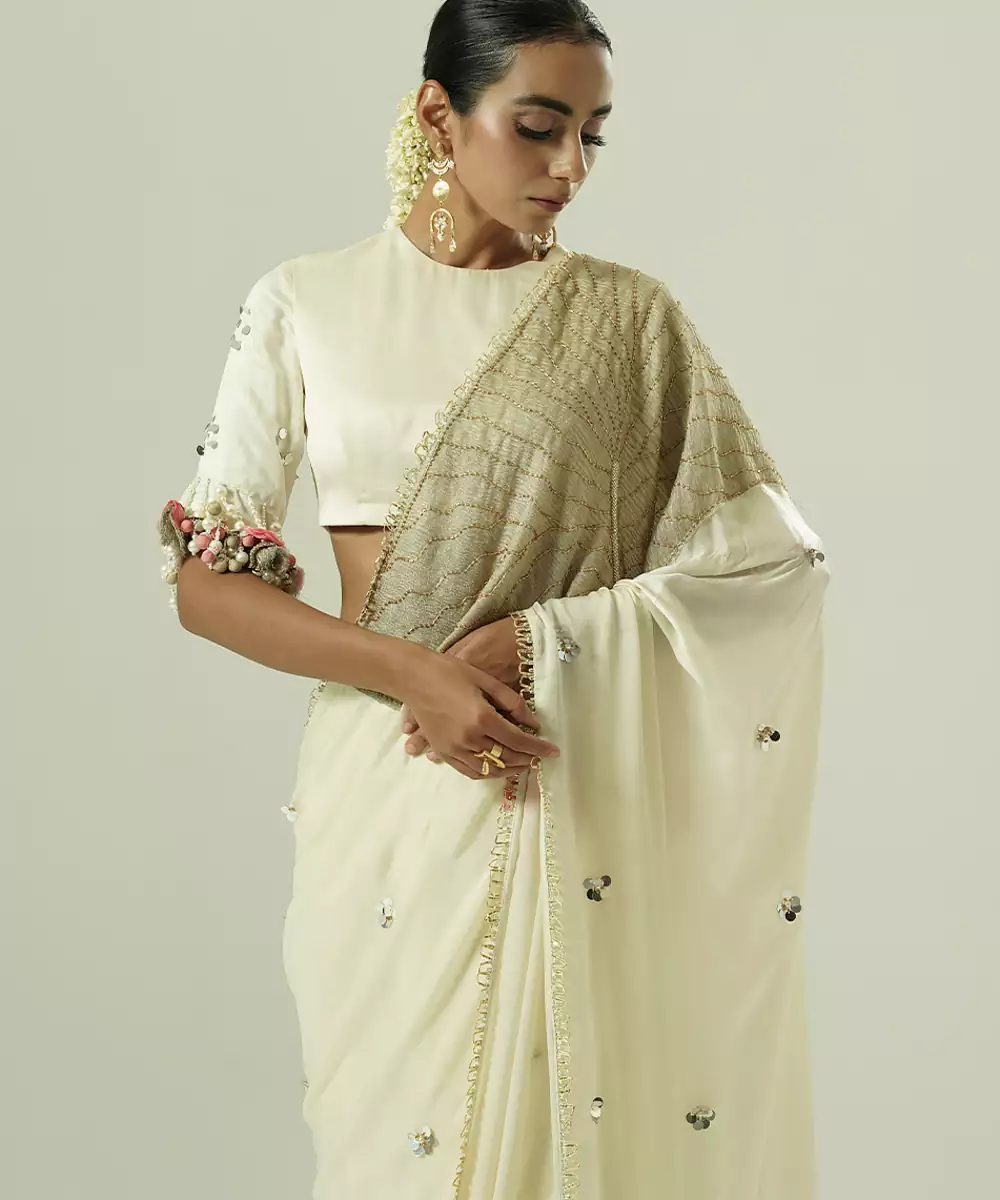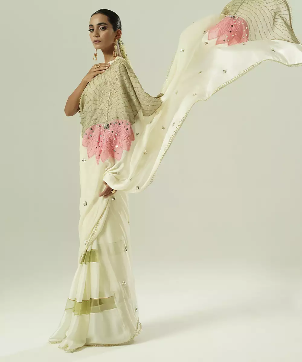 This Multicolor Embroidered Georgette Saree Exudes Grace With Its Soft Drape And Intricate Detailing. The Lightweight Fabric Enhances Movement, While Delicate Embroidery Adds A Touch Of Sophistication. Perfect For Weddings, Festive Occasions, Or Elegant Gatherings, It Offers A Timeless, Refined Look That Blends Traditional Charm With Modern Elegance.