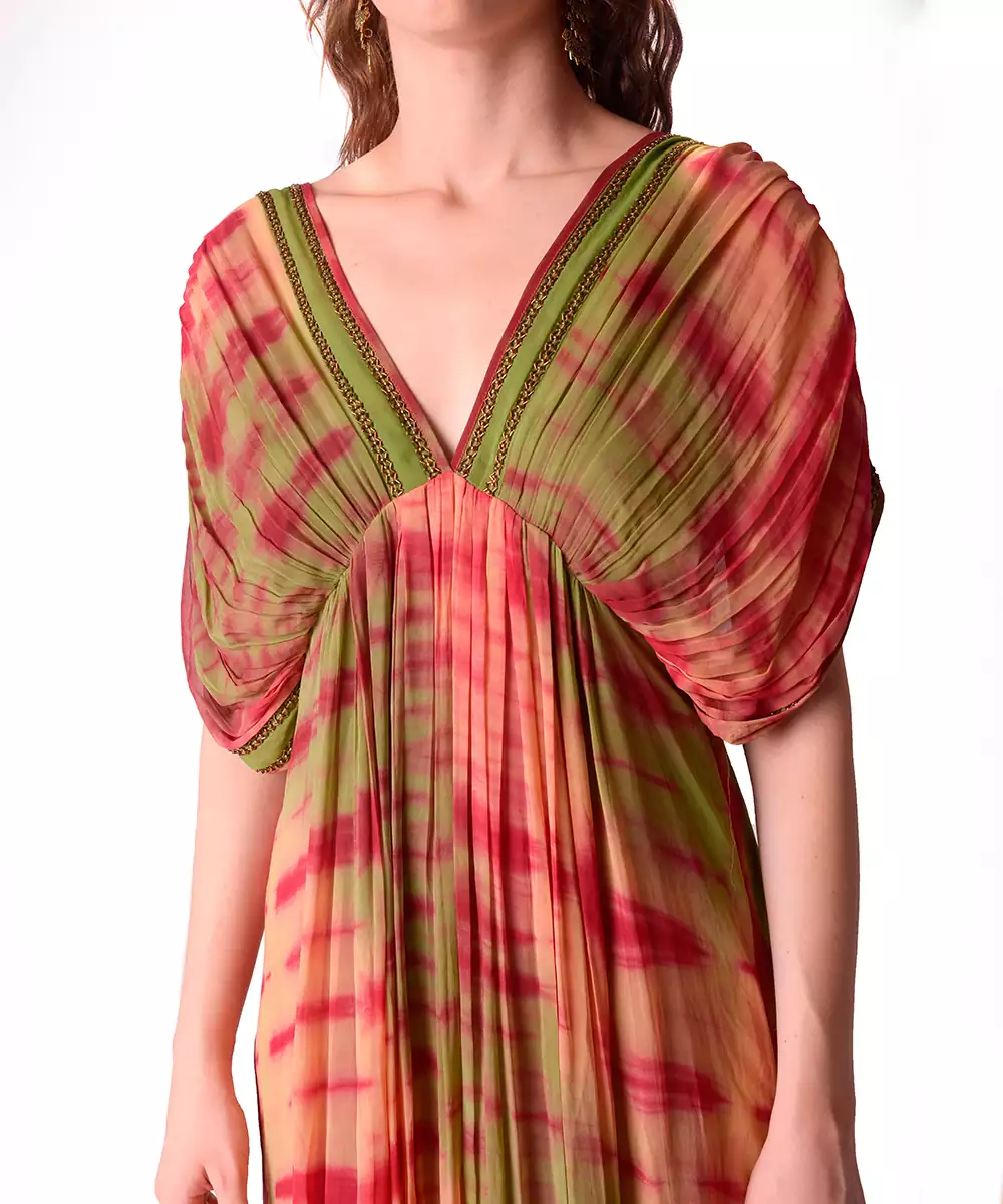 Embroidered Tie Dye Gathered Tunic With Sharara. Emnroidered Neck, Tie Dye.
