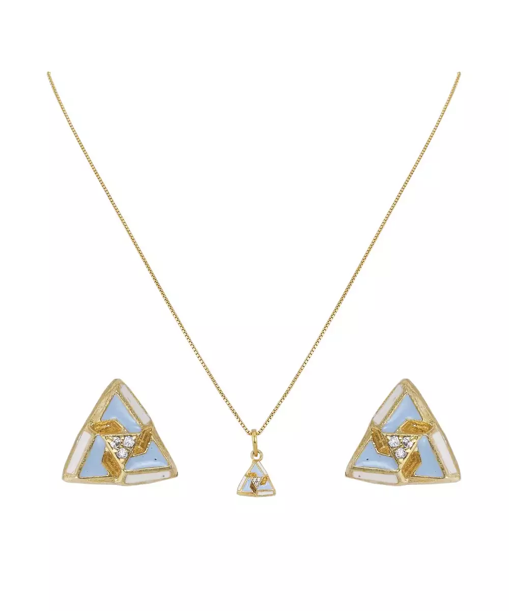 This Stunning Gold Plated Blue Stone Pendant Necklace Set Radiates Elegance And Charm. Featuring A Dazzling Blue Stone Centerpiece With Matching Earrings, It Adds A Royal Touch To Any Outfit. Perfect For Parties, Weddings, Or Festive Occasions, This Set Enhances Your Look With Timeless Sophistication And Allure.