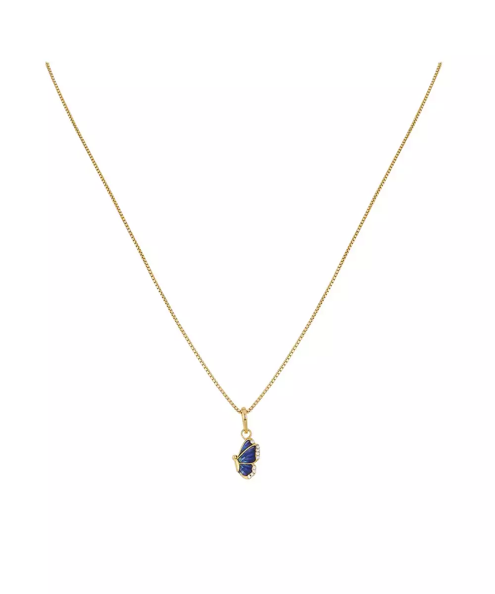 Gold Plated Blue Stone Pendant Necklace Set In Sterling Silver