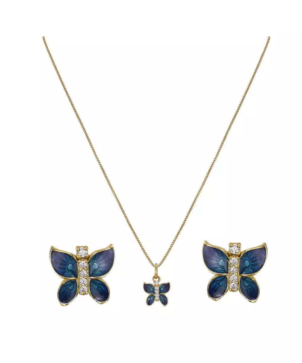 Gold Plated Blue Stone Pendant Necklace Set In Sterling Silver