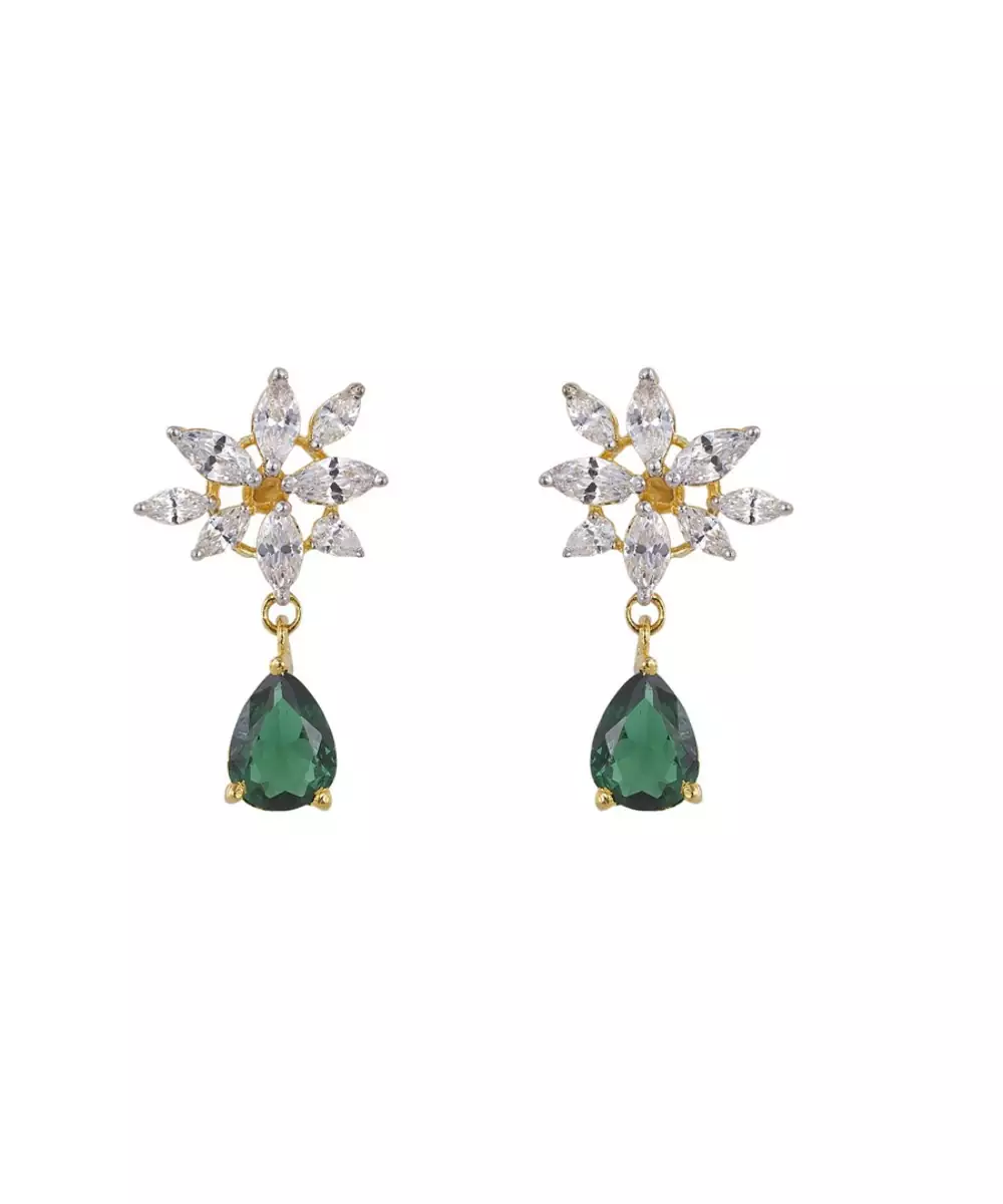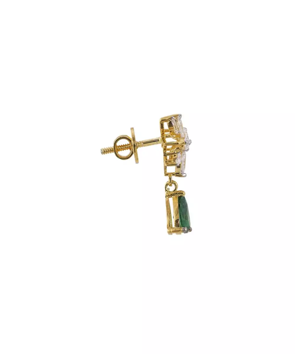These Gold Plated Green Stone Dangler Earrings In Sterling Silver Radiate Elegance And Charm. The Vibrant Green Stones Stand Out Beautifully Against The Golden Finish, Creating A Striking Contrast. Crafted On A Durable Sterling Silver Base, They Are Lightweight, Versatile, And Perfect For Festive Occasions, Parties, Or Enhancing Everyday Ethnic Attire.