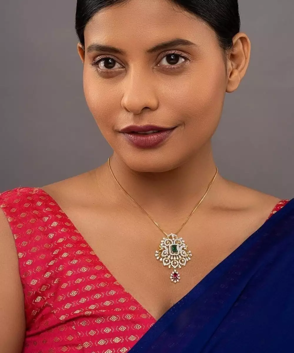 This Beautiful Gold Plated Green Stone Pendant Necklace Combines Classic Elegance With Modern Charm. The Vibrant Green Stone Centerpiece Shines Brilliantly Against The Lustrous Gold Finish, Creating A Luxurious Look. Perfect For Parties, Celebrations, Or Daily Wear, It Adds A Touch Of Sophistication And Timeless Beauty To Any Outfit.
