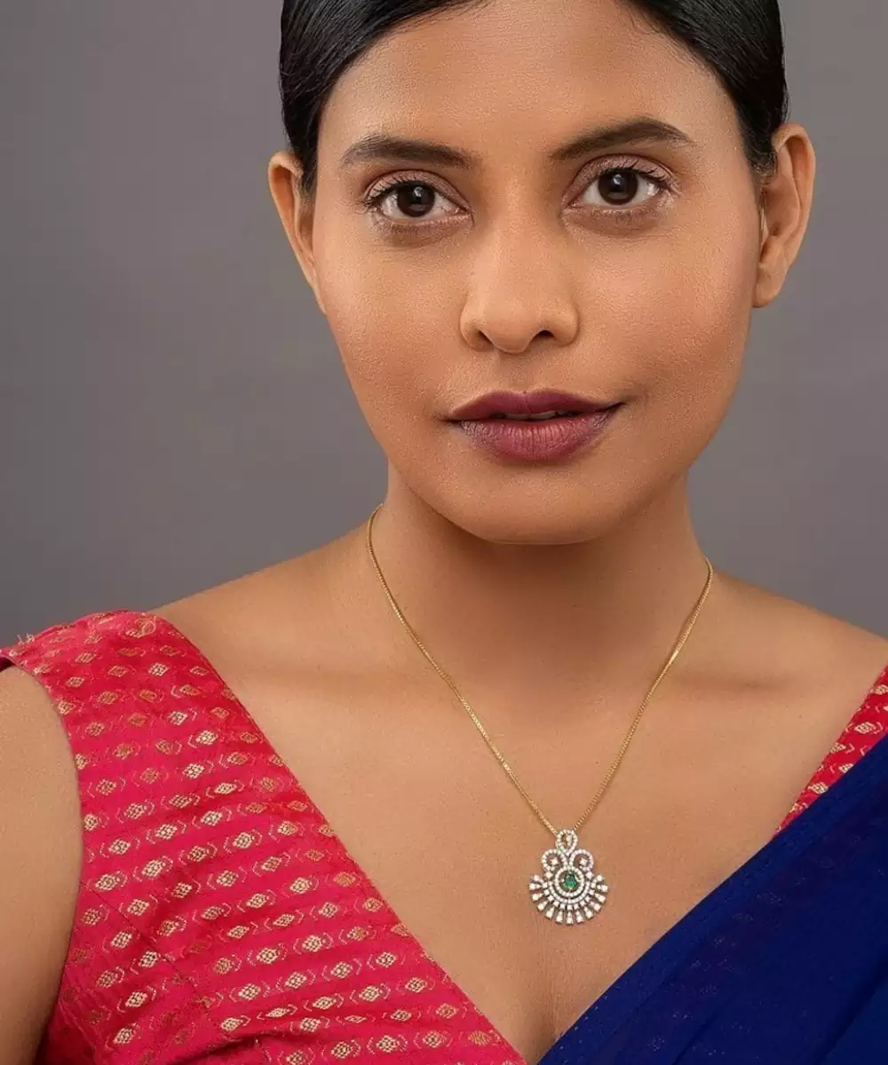 This Beautiful Gold Plated Green Stone Pendant Necklace Combines Classic Elegance With Modern Charm. The Vibrant Green Stone Centerpiece Shines Brilliantly Against The Lustrous Gold Finish, Creating A Luxurious Look. Perfect For Parties, Celebrations, Or Daily Wear, It Adds A Touch Of Sophistication And Timeless Beauty To Any Outfit.
